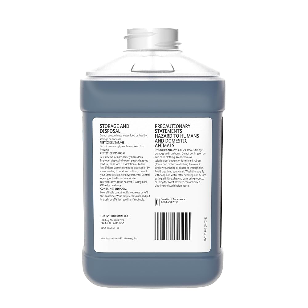 This formula is ideal for use on hard, inanimate, nonporous surfaces such as floors, walls, porcelain, and plastic surfaces in hospitals, schools, hotels, and more. Use solution is neutral to floor finish so it will not dull, pit or soften floor finishes