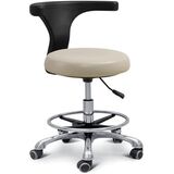 Experience unparalleled comfort and functionality with our versatile stool designed for various environments. Featuring a unique T-back design, this stool reduces back strain, ensuring you stay comfortable even during extended periods of use. The height adjustment mechanism allows you to easily customize the seat height from 460mm to 610mm (18.8" to 24.8") with a simple pull of the handle, accommodating users of different heights and preferences. Crafted from high-quality PU leather and durable high-density foam, this stool combines comfort with longevity. The robust aluminum alloy base supports up to 200KG, providing a stable and reliable seating solution for any setting. With a full 360° swivel and silent wheels, you can move effortlessly in any direction without disturbing others, making it perfect for busy environments such as medical offices, hospitals, spas, salons, classrooms, and home use. Whether you're a professional or someone looking for practical seating options, this stool offers a blend of comfort, durability, and functionality. Elevate your seating experience and enjoy the flexibility this stool brings to your workspace or home.