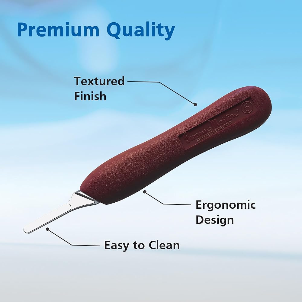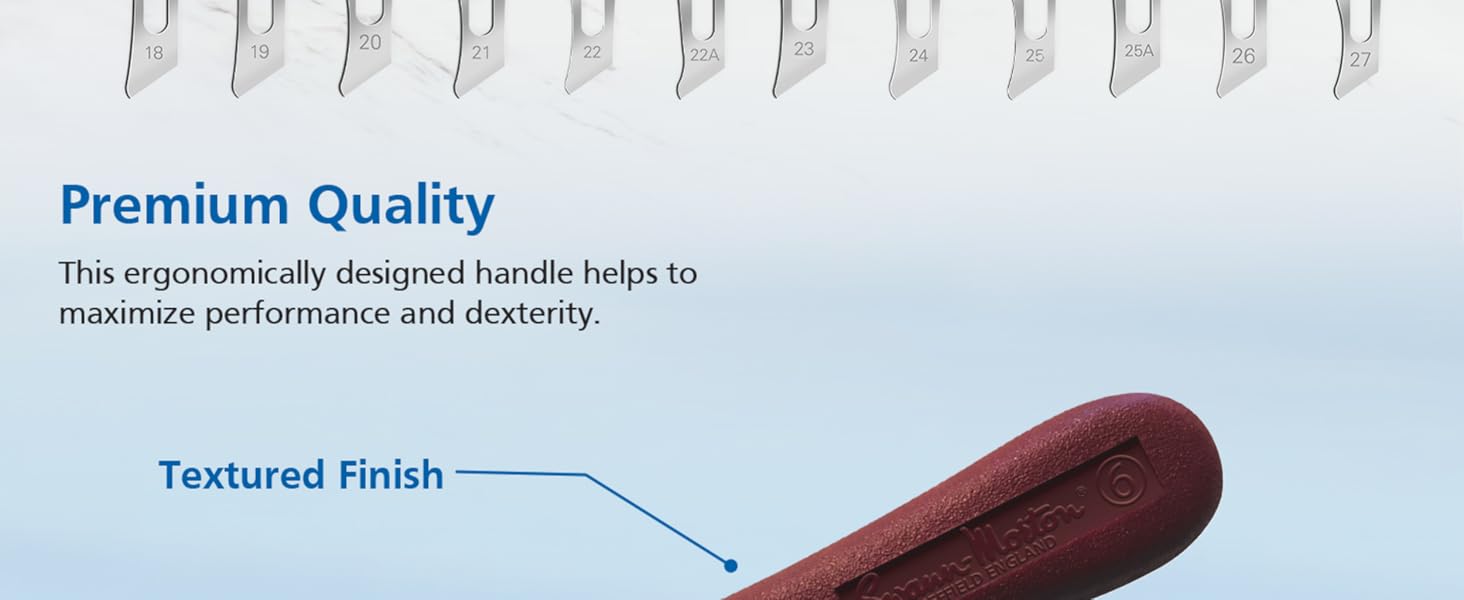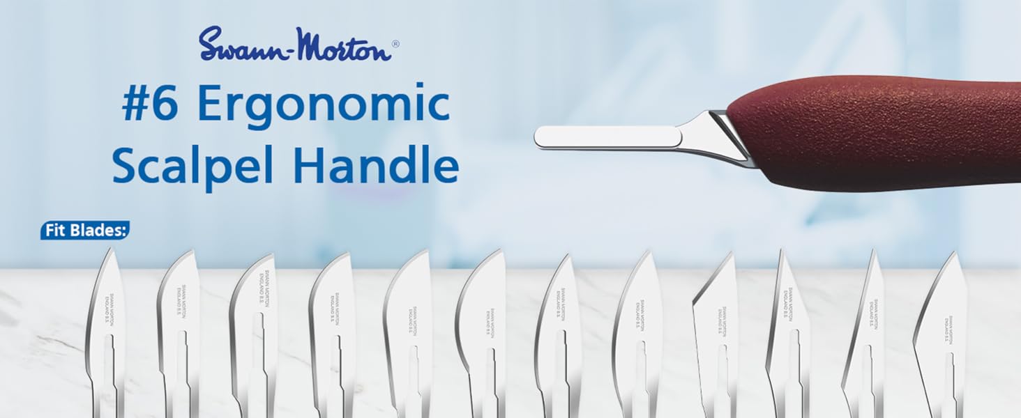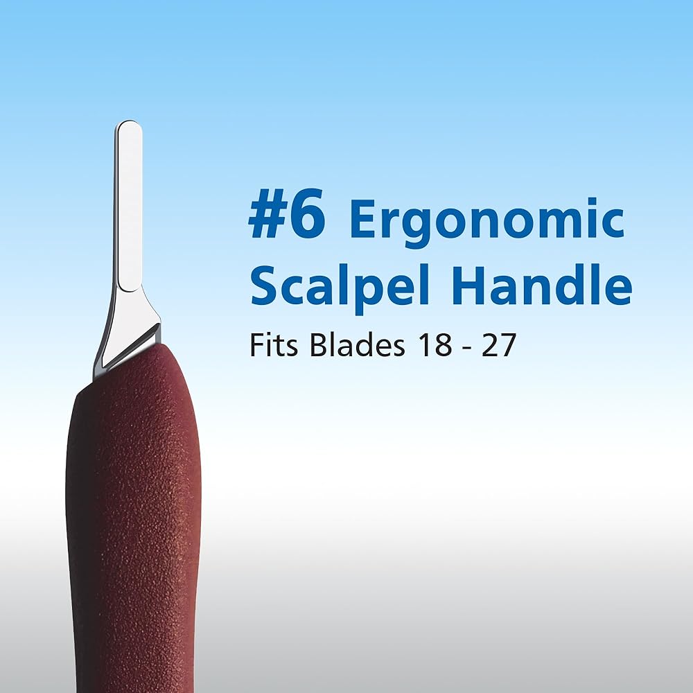 مقبض المشرط رقم 6: مصمم ليناسب الشفرات 18، 19، 20، 21، 22، 23، 24، 25، 26 و27، هذا المقبض متوافق مع الشفرات الجراحية والمختبرية الشهيرة للتدريب والحرفية والعمل الدقيق.
