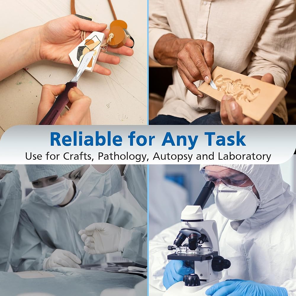 استخدام متعدد الاستخدامات: التصميم القابل لإعادة الاستخدام مثالي للشفرات المستخدمة في الممارسة الجراحية، والعمل المعملي، وصنع النماذج، وغيرها من الهوايات المفصلة أو التطبيقات الحرفية التي تتطلب الدقة.