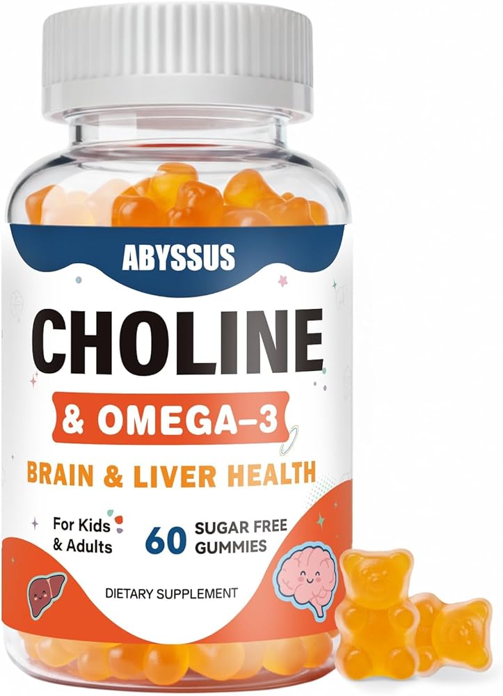 علكات الكولين من أبيسوس للأطفال والكبار، مكملات بيتارترات الكولين الخالية من السكر مع الطحالب أوميجا 3 DHA EPA وB6 B12 النشط، دعم الدماغ والكبد، نباتي، 60 قطعة