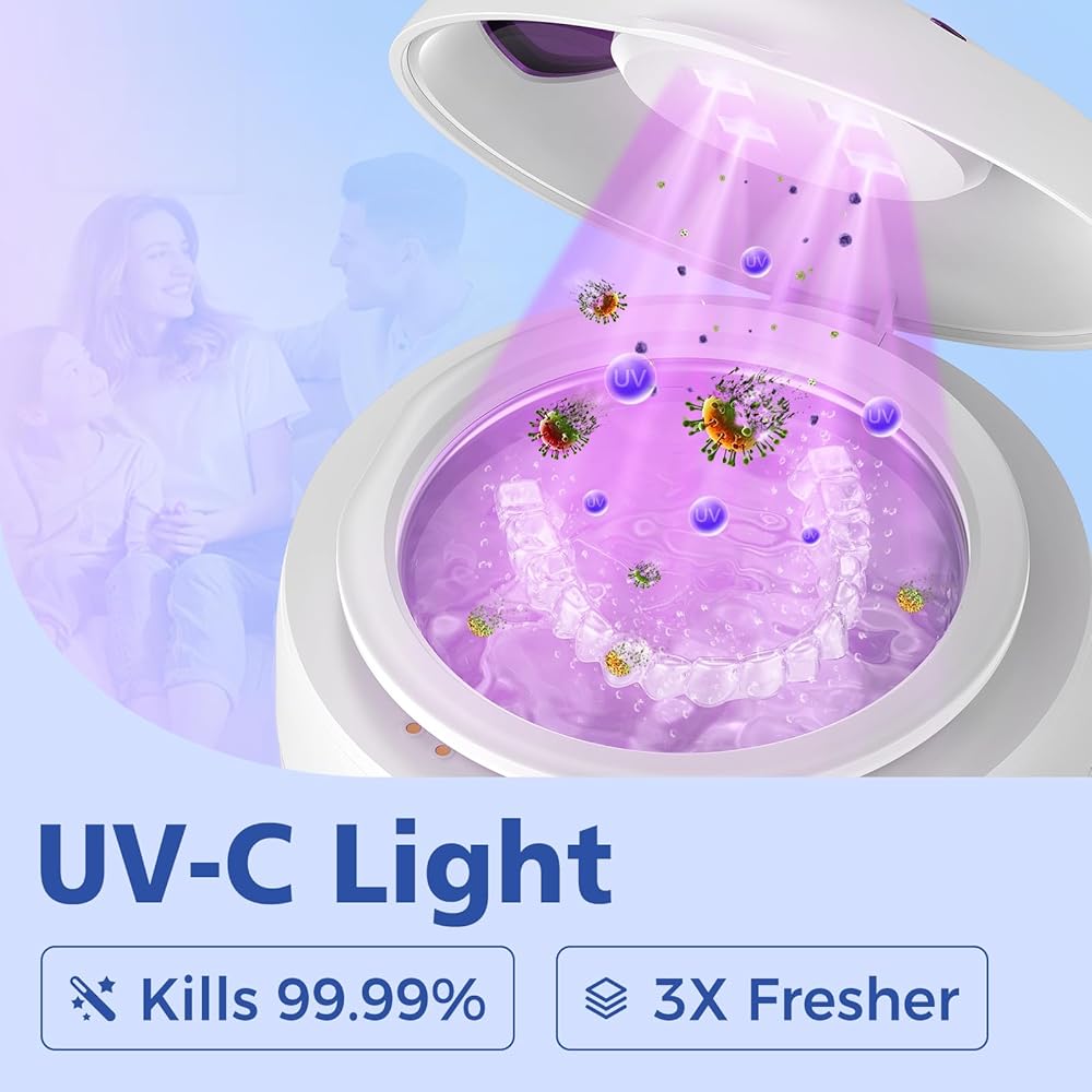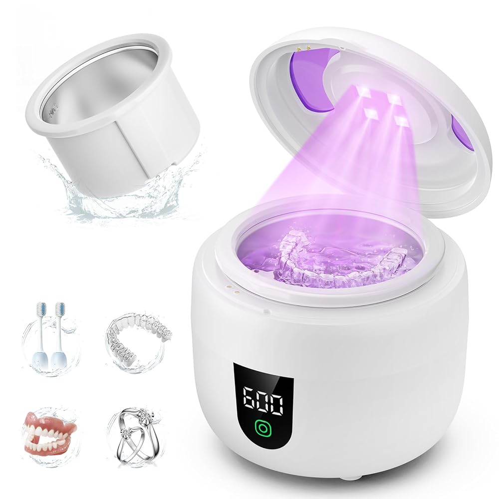45kHz Ultrasonic and 4-UV Lights: This ultrasonic retainer cleaner uses 45kHz high-frequency sound waves, easily removing dirt from aligners, mouth guards, and dental appliances. It reaches deep into crevices without damaging your items. The 4 built-in UV lights activate when the lid is closed, helping keep your items fresh and clean. This ultrasonic jewelry cleaner also effectively removes grime from your jewelry, keeping it sparkling.