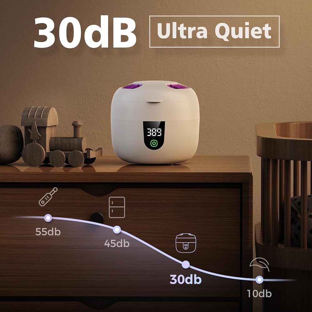 Noise Reduction with Dual Window Design: Unlike other retainer cleaner machine, we've upgraded the traditional toothbrush hole to a sliding dual-window design. Open the windows to clean toothbrushes vertically, and close the windows to reduce noise from 45dB to 30dB, ensuring a truly silent cleaning experience, perfect for use it everywhere.
