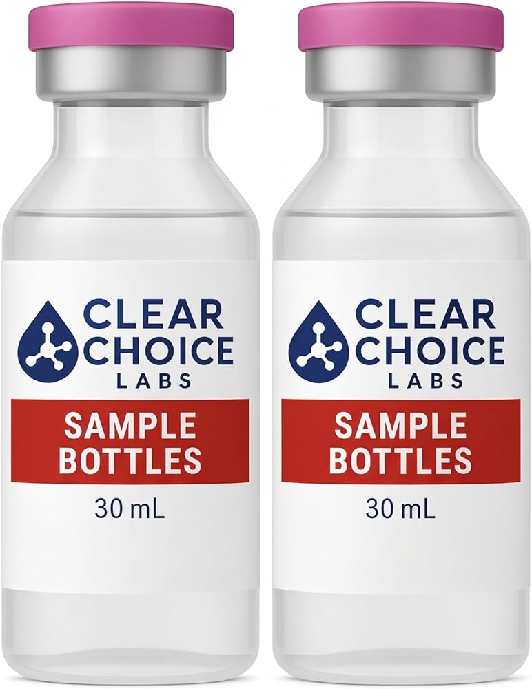 TWO PACK LAB SAMPLE BOTTLES: Includes two 30 mL clear plastic sample bottles designed for laboratory handling, storage, and research workflows.