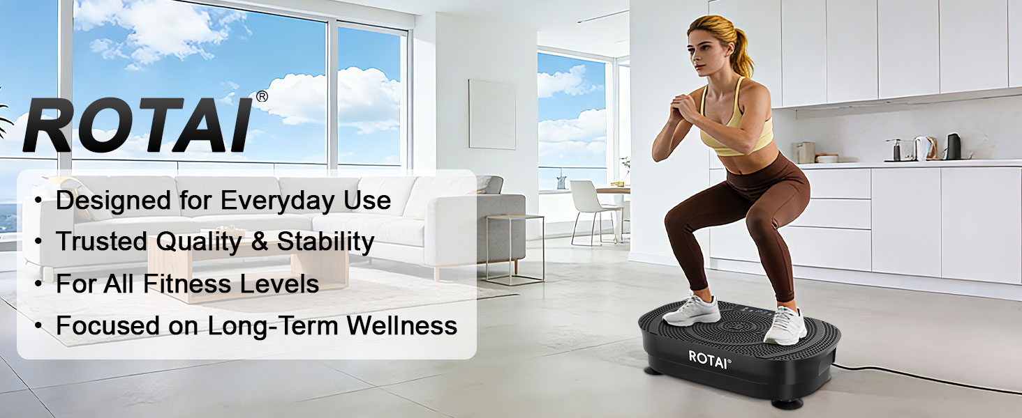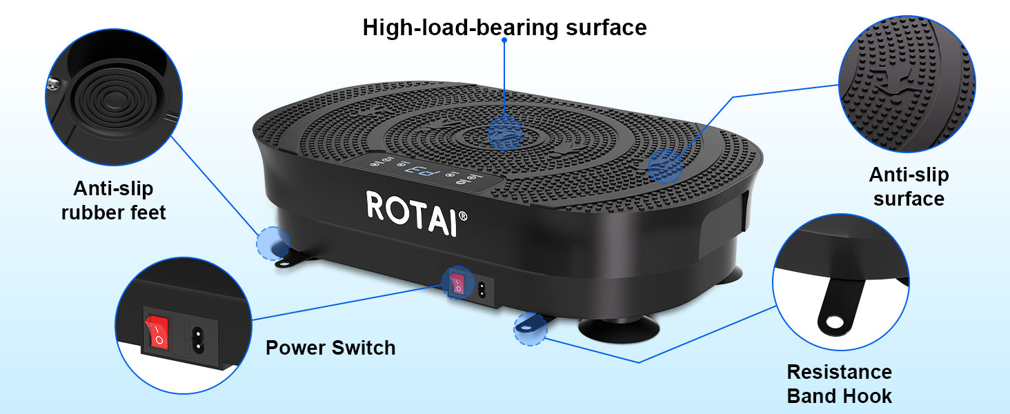 الجودة والدعم الذي تم اختباره بدقة: يتم اختبار كل جهاز تمارين لوحة الاهتزاز من ROTAI بدقة لدعم المستخدمين بأمان يصل إلى 400 رطل. تعتبر آلة الألواح الاهتزازية الخاصة بنا مثالية للصالات الرياضية المنزلية، أو غرف المعيشة، أو مناطق استراحة المكاتب، مما يساعدك على تحقيق أهداف اللياقة البدنية بسرية. استمتع براحة البال مع خدمة ما بعد البيع الشاملة التي نقدمها. اتصل بنا عبر البريد الإلكتروني أو الهاتف للحصول على أي مساعدة
