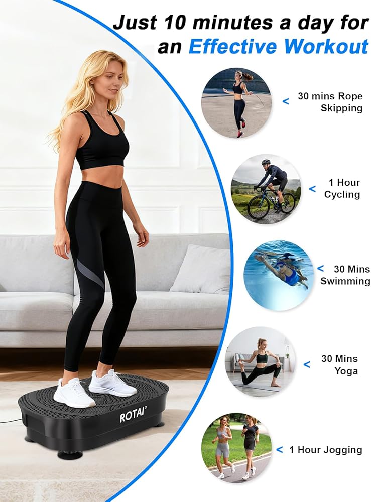 حرق الدهون عالي الكثافة لمدة 10 دقائق: تستخدم معدات اللياقة البدنية من روتاي اهتزازات عالية التردد لتنشيط الجزء السفلي من الجسم، وتحسين التوازن والمرونة، مع حرق سعرات حرارية أكثر من التدريبات التقليدية مثل الجري أو السباحة. مثالي للمحترفين المشغولين الذين يبحثون عن حلول لياقة بدنية موفرة للوقت
