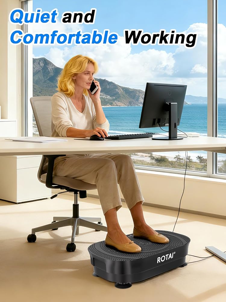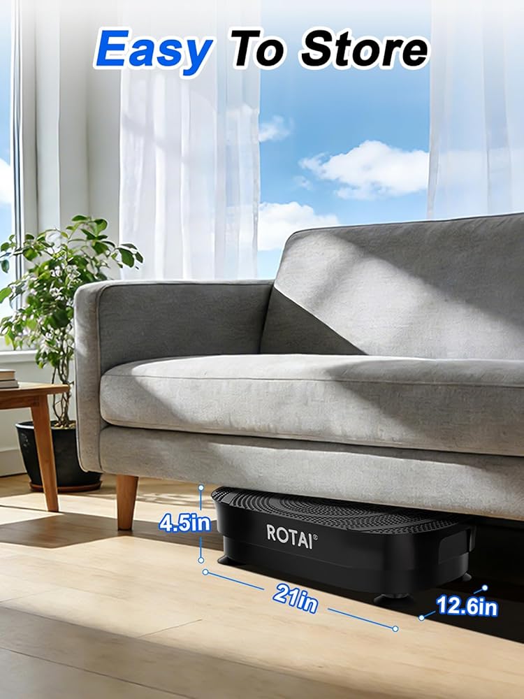 تصميم صغير الحجم وهادئ: بأبعاد نحيفة (12.6 بوصة عمق × 21 بوصة عرض × 4.5 بوصة ارتفاع)، يمكن أن تنزلق بسهولة تحت المكاتب أو الأرائك. عند <40 ديسيبل (أكثر هدوءًا من الهمس)، باستخدام لوحة الاهتزاز ROTAI وباتباع الأوضاع المختلفة الموضحة في دليل المستخدم، يمكنك تحقيق تدريب متزامن للجزء العلوي والسفلي من الجسم، والحصول تدريجيًا على وضعية جيدة وجسم صحي
