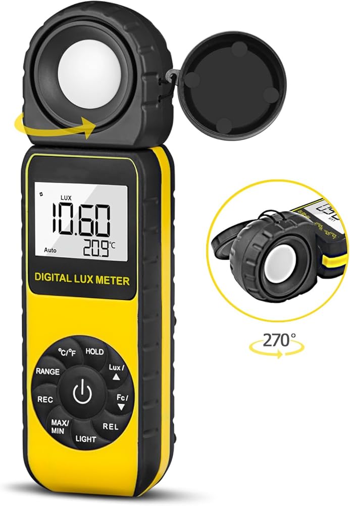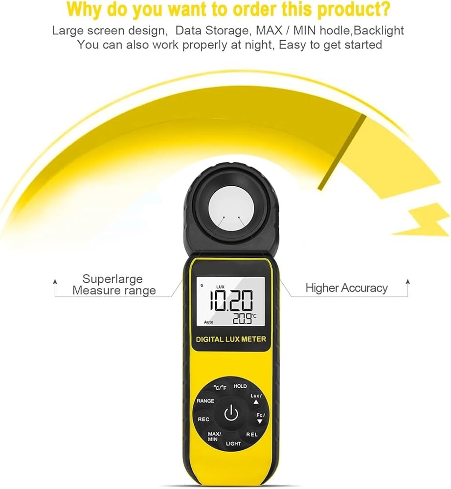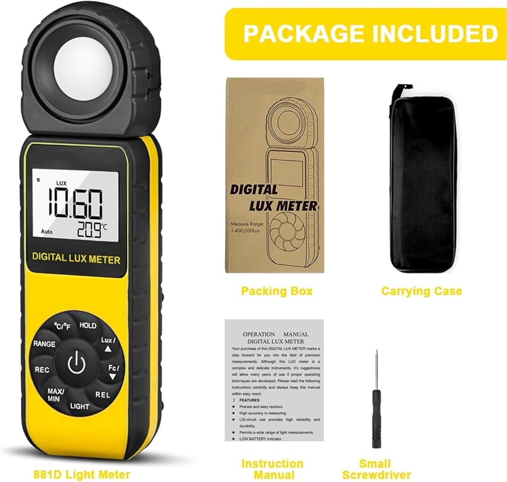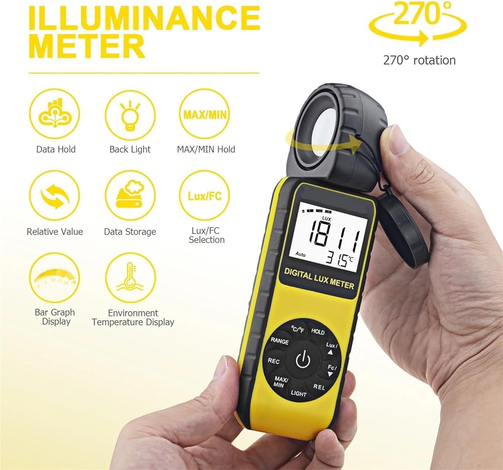 • -Test your indoor and outdoor lighting with 400,000 LUX range making it versatile for various projects and environments.