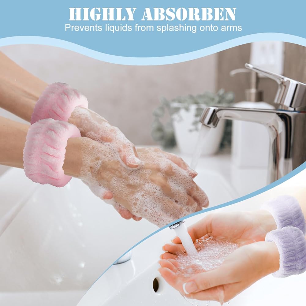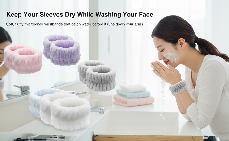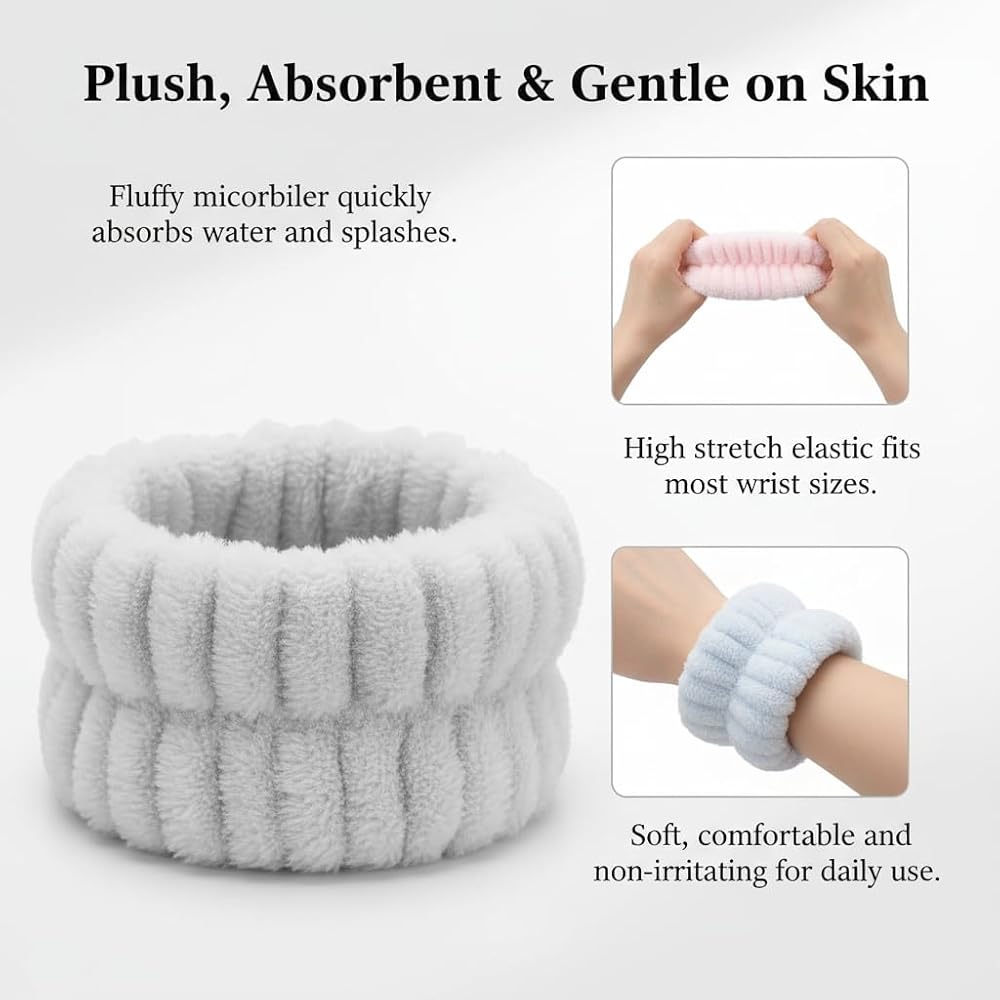 [مادة فاخرة] مصنوعة من مادة الألياف الدقيقة عالية الجودة، أساور المعصم هذه ناعمة وصديقة للبشرة ولطيفة على بشرتك، مما يوفر أقصى درجات الراحة أثناء غسل الوجه.