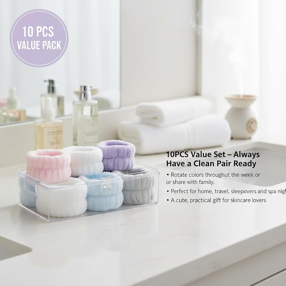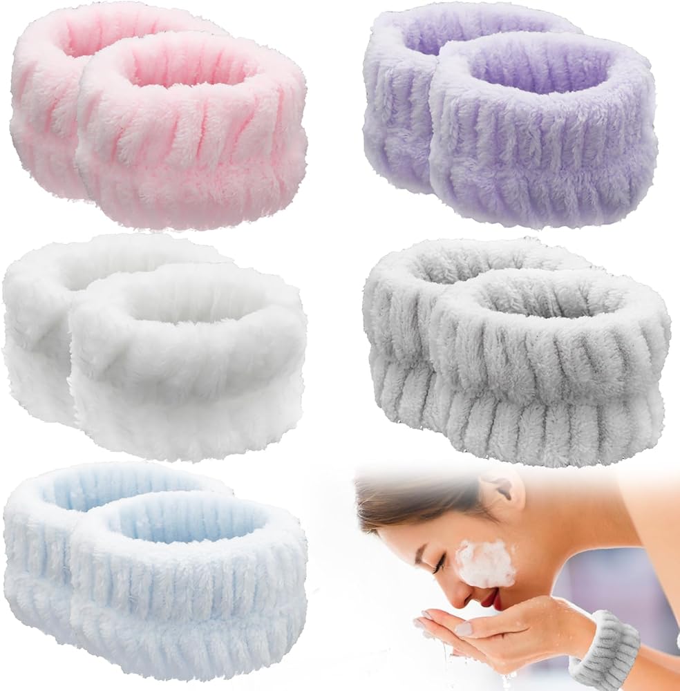 10 قطع من أربطة المعصم المصنوعة من الألياف الدقيقة لغسل الوجه، أساور معصم ناعمة ماصة للمنتجعات الصحية تحافظ على الماء بعيدًا عن الذراعين، ملحقات تنظيف البشرة وإزالة المكياج، متعددة الألوان