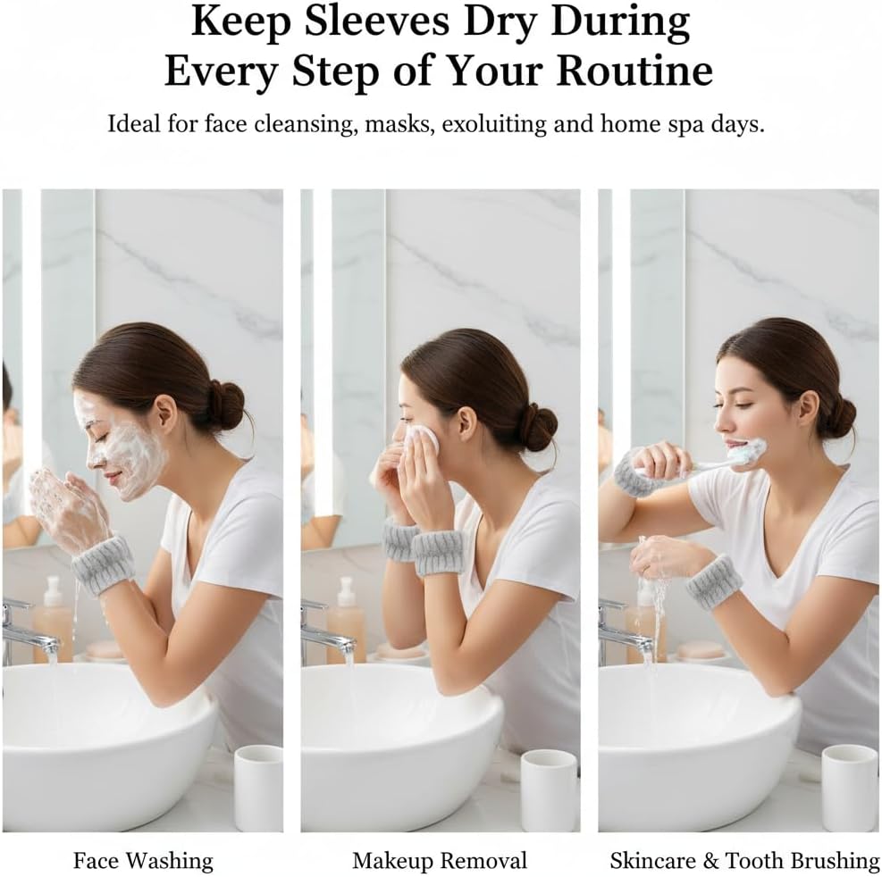 [امتصاص قوي] يمتص الماء بشكل فعال ويمنعه من الجريان على ذراعيك، ويحافظ على أكمامك ويقاوم الجفاف أثناء غسل وجهك أو وضع منتجات العناية بالبشرة.