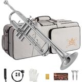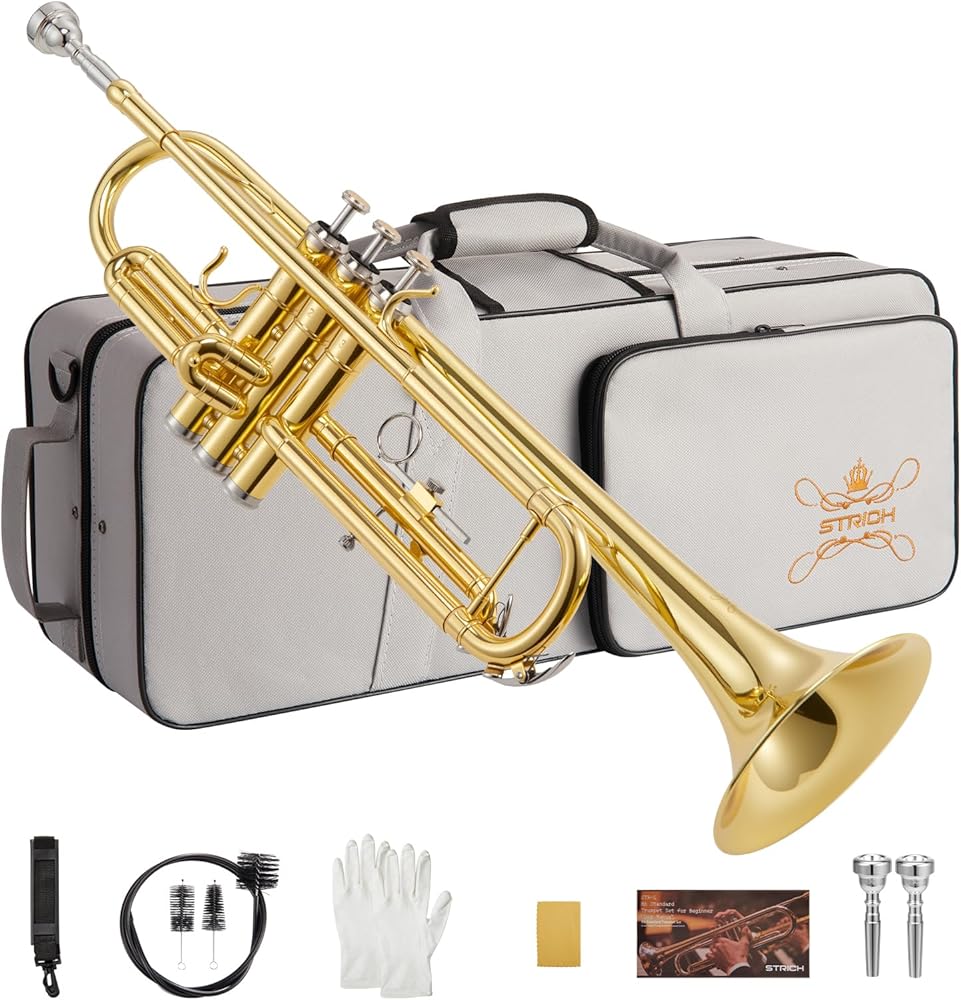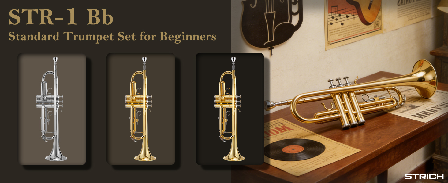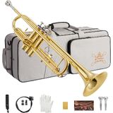مجموعة بوق قياسية Bb للمبتدئين، أداة بوق نحاسية للطلاب مع حقيبة صلبة، مجموعة تنظيف، قطع فم 7C و3C، وقفازات - STR-1G، ذهبي