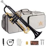 مجموعة بوق قياسية Bb للمبتدئين، أداة بوق نحاسية للطلاب مع حقيبة صلبة، مجموعة تنظيف، قطع فم 7C و3C، وقفازات - STR-1G، ذهبي in Kuwait