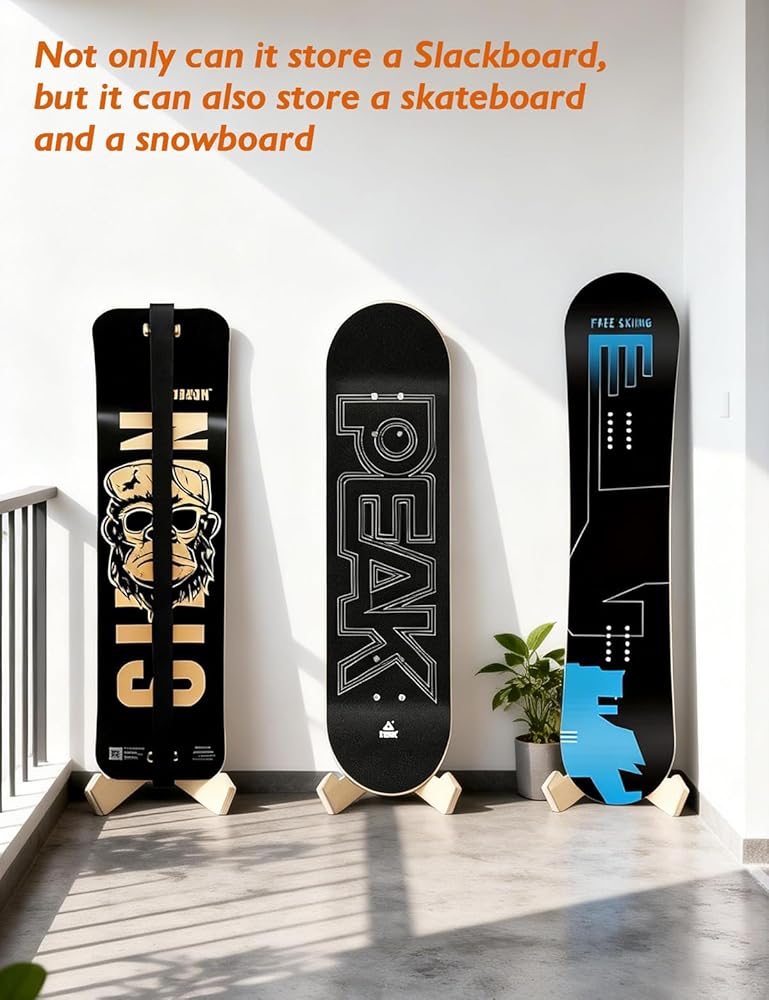 Sturdy & Stable Construction: Reliable Support for Slackline Board Sturdy & Stable Support: Secure Slackline Board Storage: Slackline board display rack delivers unshakable stability for your balance board. Durable construction prevents wobbling or tipping, keeping your balance trainer safe from scratches whether stored or displayed. A must-have sports & outdoors accessory for reliable balance board organization.