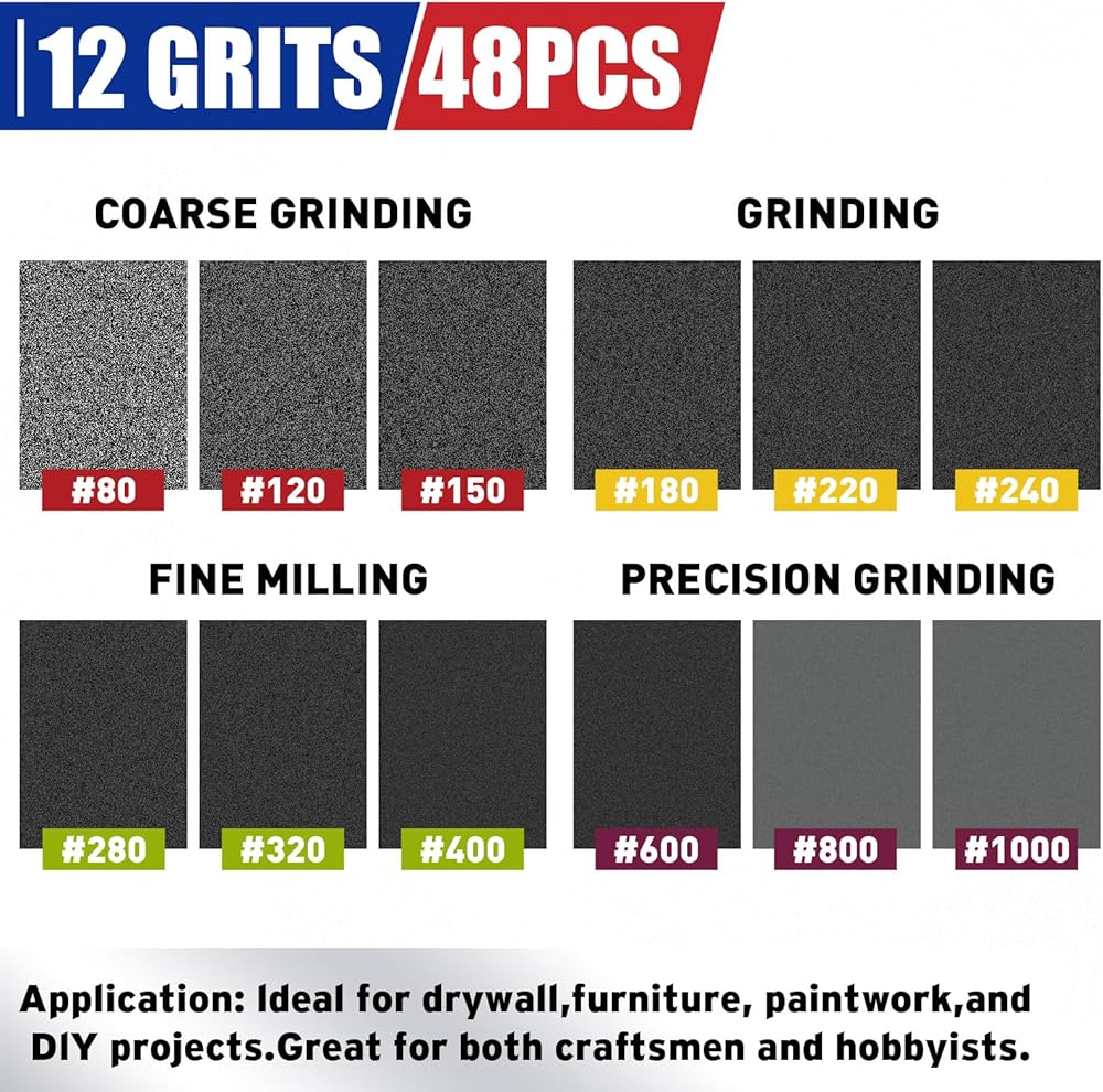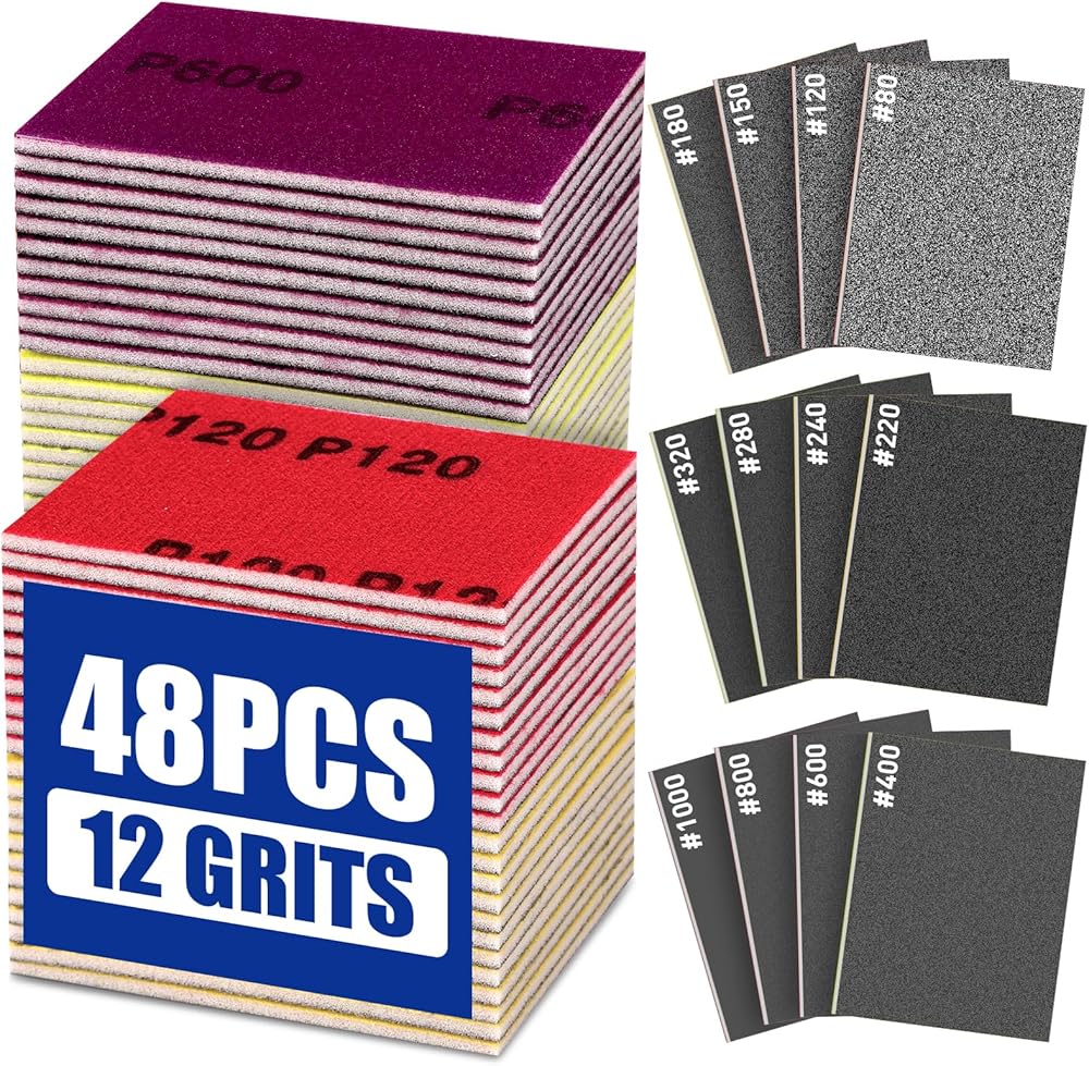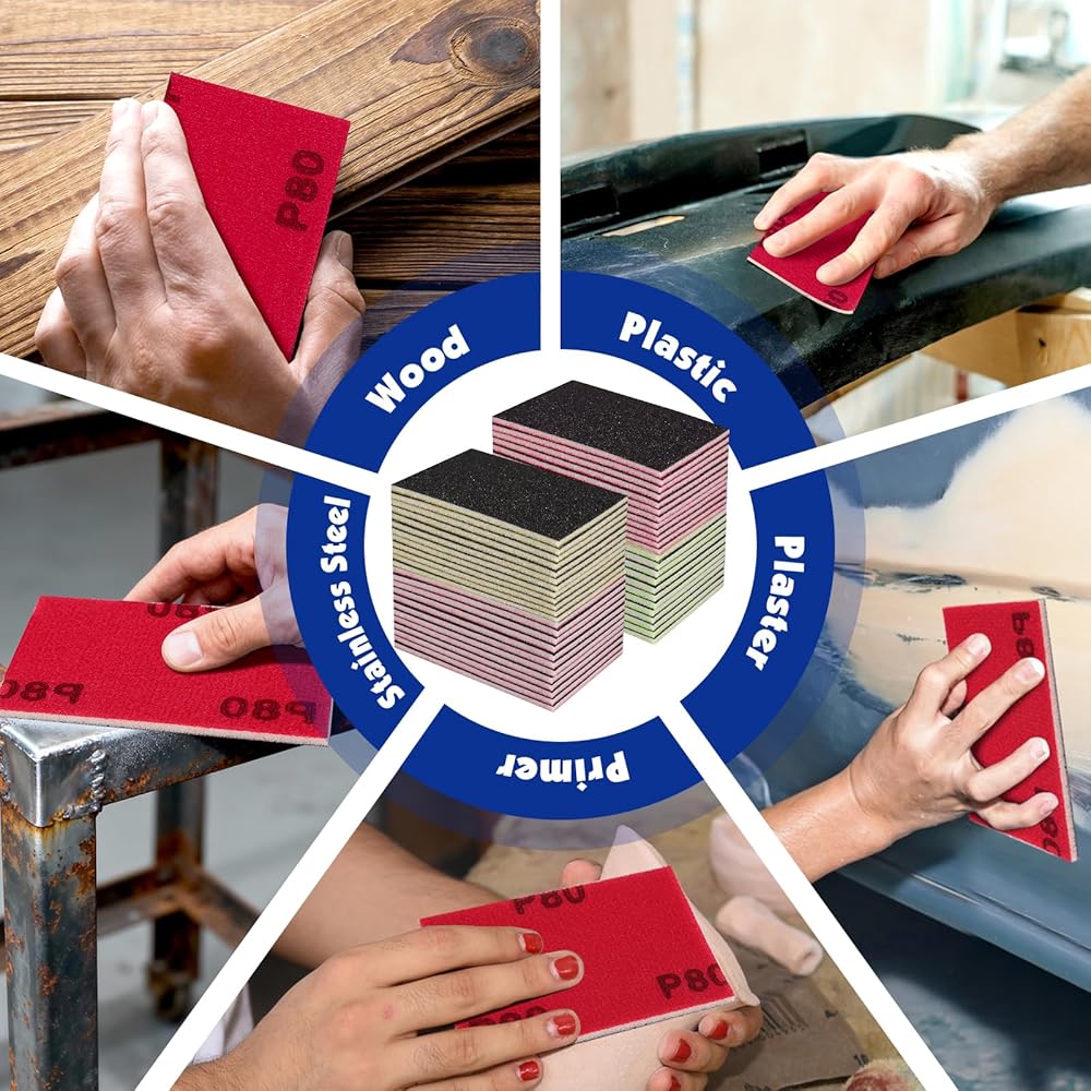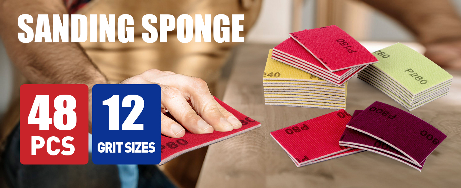 مجموعة واسعة من الحصى: تغطي مجموعة إسفنجة الصنفرة المكونة من 48 قطعة طيفًا كاملاً من 80 إلى 1000، مع 4 قطع متوفرة لكل حبيبة (80، 120، 150، 180، 220، 240، 280، 320، 400، 600، 800، 1000)، تغطي الصنفرة الإسفنجية العملية بأكملها من الصنفرة الخشنة. لتلميع المرآة.