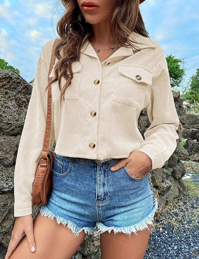 • يأتي القميص القصير بتصميم كلاسيكي بياقة على شكل طية صدر وأكمام طويلة مع أكتاف منسدلة، وأساور بأزرار، وجيبين مربعين بأزرار. إنها الإضافة المثالية لمجموعتك وتأتي في مجموعة متنوعة من الألوان الصلبة لتمنحك مظهرًا عصريًا.