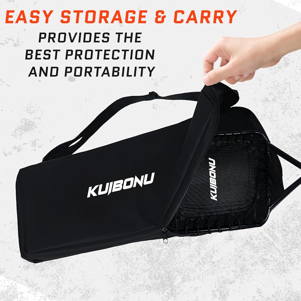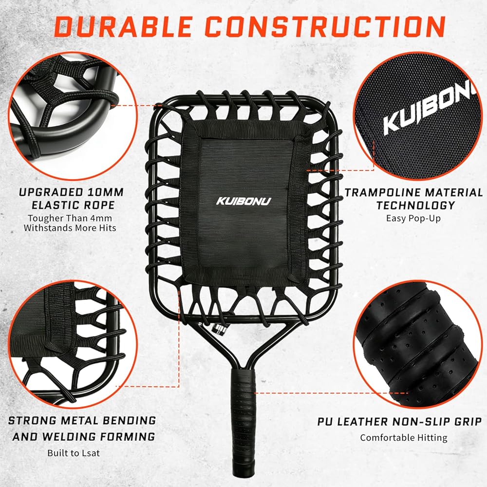 تصميم طويل الأمد: الشبكة مصنوعة من مادة الترامبولين عالية الجودة والإطار المعدني القوي يمكن أن يتحمل قسوة التدريب اليومي والتأثيرات القوية. يوفر المقبض المطاطي غير القابل للانزلاق قبضة مريحة، مما يضمن سنوات من الاستخدام الموثوق.