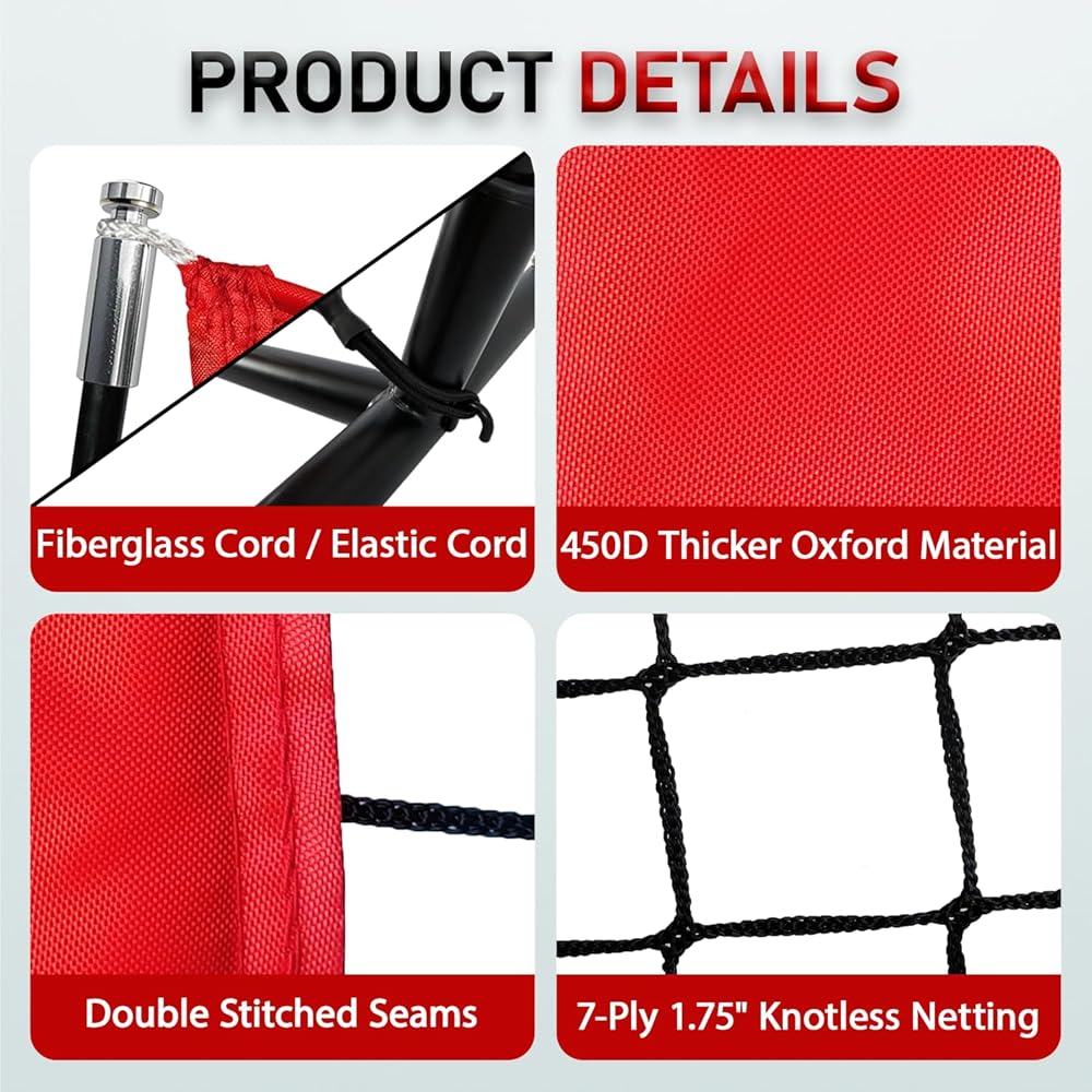 【تصميم مثالي للأطفال مع منطقة حمراء وهدف】 تم تصميم شبكتنا مقاس 5 × 5 أقدام خصيصًا للرياضيين الشباب، وتوفر منطقة تدريب مثالية - كبيرة بما يكفي للتدريب الفعال ولكنها ذات حجم مثالي للاعبين بعمر 12 عامًا أو أقل. توفر منطقة الضربة الحمراء النابضة بالحياة والهدف الإضافي تعليقات مرئية فورية، مما يحول التدريب إلى لعبة جذابة تعمل على تحسين دقة الرمي وهدف الضرب بشكل كبير. إنها الأداة المثلى لبناء الثقة والأساسيات المناسبة بأمان.