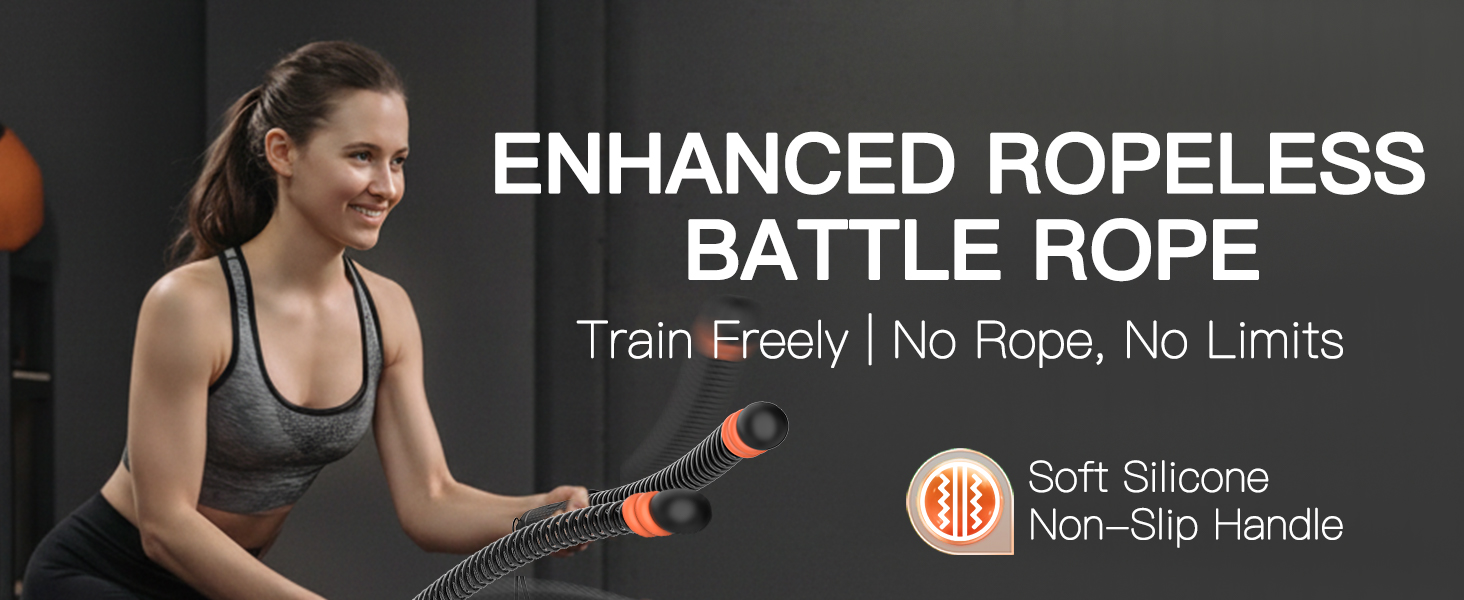 هادئ وصغير الحجم للتمارين في أي مكان: مصمم للاستخدام المنزلي، حبل المعركة المحمول بدون حبال يعمل بهدوء دون أي تأثير على الأرض. مثالي للشقق أو غرف المعيشة أو المكاتب، فهو يتيح لك التدريب في أي وقت وفي أي مكان بتركيز وكثافة دون ضوضاء أو مخاوف تتعلق بالمساحة.