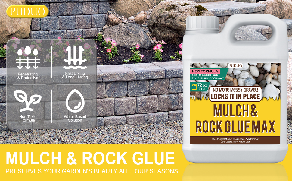 Puduo Rock Glue للمناظر الطبيعية مع البخاخ 72oz - 100٪ نفاذية وآمنة للحيوانات الأليفة الغراء للمناظر الطبيعية مع البخاخ - جاهز لاستخدام رابط الحصى الشفاف