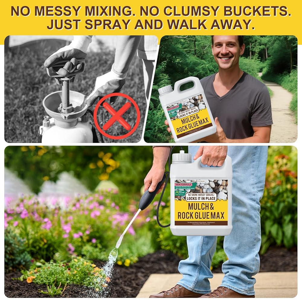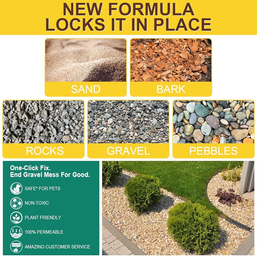 صخور صمغ حجرية فائقة: يعمل رذاذ الغراء Max Mulch الخاص بنا على تثبيت مجموعة متنوعة من عناصر المناظر الطبيعية بشكل آمن، بما في ذلك المهاد ورقائق الخشب والحصى والرمل والأصداف وقش الصنوبر والحصى والأحجار. يمنع بشكل فعال النزوح بسبب الرياح والأمطار، ويضمن غراء المناظر الطبيعية الخاص بنا بقاء النشارة في مكانها، ولكنه لا يزال يسمح للمياه بالمرور، مما يحمي حديقتك ونباتاتك!