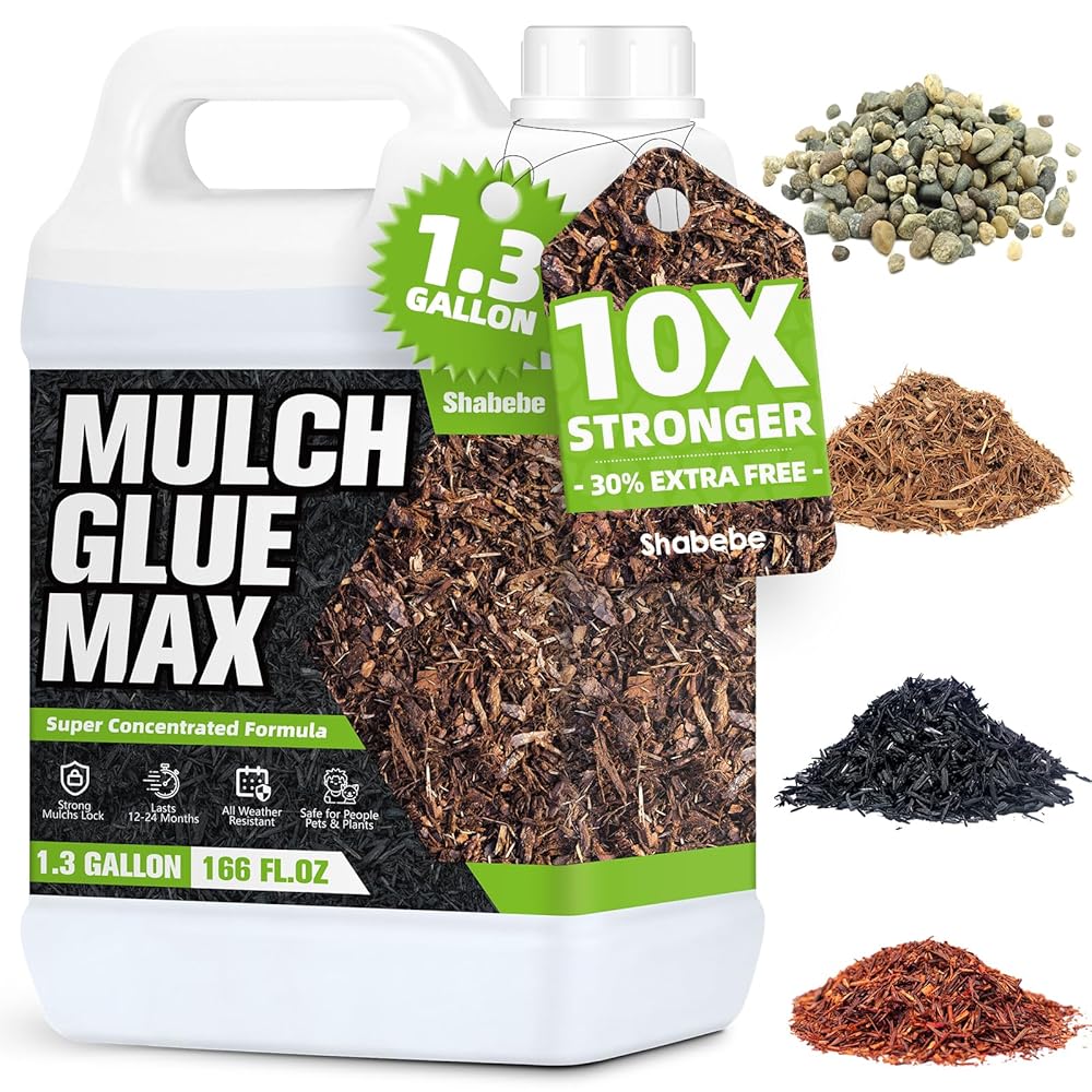 تغطية احترافية، سهلة الاستخدام: يوفر Shabebe Mulch & Rock Glue نتائج احترافية باستخدام بسيط يمكنك صنعه بنفسك. ما عليك سوى تخفيفه ورجه ورشه فوق المهاد الجاف. ضعي 2-3 طبقات رقيقة لثبات يدوم طويلاً. زجاجة واحدة بوزن 166 أونصة تغطي ما يصل إلى 180 قدمًا مربعًا بعمق 1 بوصة بعد التخفيف - مثالية للساحات الكبيرة وأسرّة الحديقة والباحات. - لا داعي للقلق بشأن نفاد منتصف المشروع