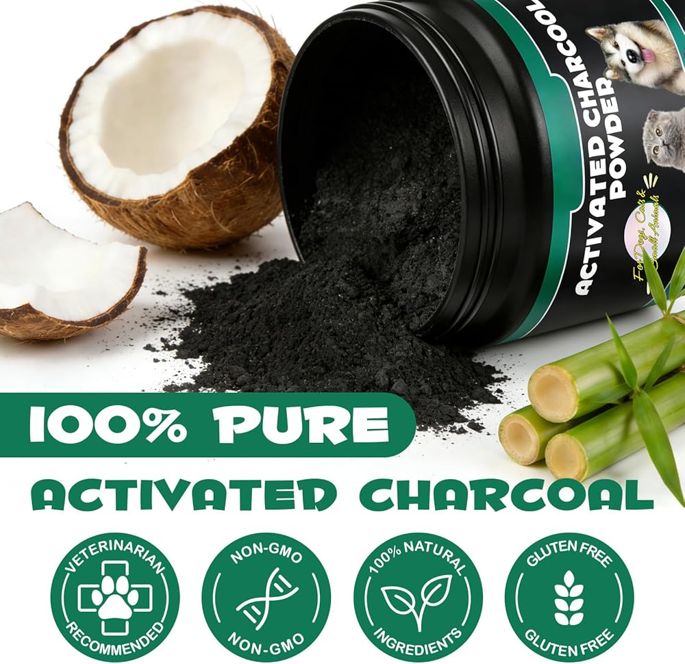 • 【Pure, Single-Ingredient Formula — No Additives】 This activated charcoal powder is derived from carefully selected natural hardwood and processed at high temperatures to create a highly porous structure.Contains only premium activated charcoal with no flavors, colors, preservatives, or artificial ingredients. Non-GMO, gluten free, and soy free — a clean and transparent formula for ingredient-conscious pet owners