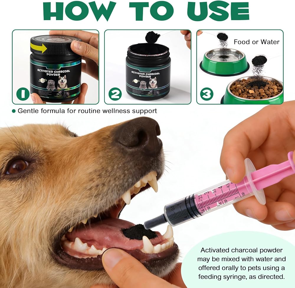 • 【Ultra-Fine Powder for Easy Dosing & Mixing】 This ultra-fine activated charcoal powder blends smoothly with food or water, or can be administered directly using a feeding syringe for more precise portions. Allows for precise, adjustable dosing based on your pet's weight and needs — from small cats to large horses. Simple, stress-free administration for daily care or emergency use