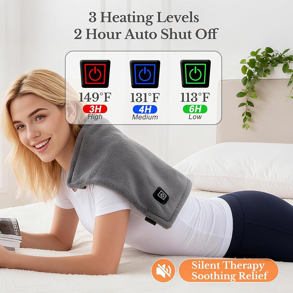 التحكم الذكي في درجة الحرارة لراحة مخصصة تتميز وسادة التسخين هذه بـ 3 إعدادات للحرارة - منخفضة (113 درجة فهرنهايت)، متوسطة (131 درجة فهرنهايت)، وعالية (149 درجة فهرنهايت) - مع وظيفة الإغلاق التلقائي بعد ساعتين. استمتع بالدفء المستمر مع أوقات تشغيل مختلفة: منخفض (4-5 ساعات)، متوسط (3-4 ساعات)، مرتفع (2.5-3 ساعات). تعمل وظيفة الإغلاق التلقائي على منع ارتفاع درجة الحرارة. إشعار: قد تختلف درجة حرارة التسخين الفعلية ووقت الاستخدام عند مستويات حرارة مختلفة حسب درجة الحرارة المحيطة والظروف البيئية.