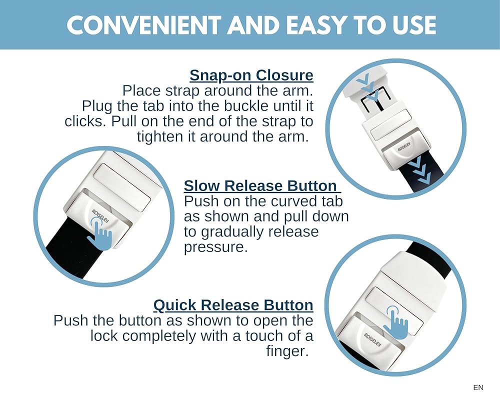 هيكل قوي معتمد من CE متعدد الألوان يتميز بقبضة بلاستيكية صلبة مع مشبك بلاستيكي يسمح بالإفراج السريع بلمسة إصبع أو إطلاق تدريجي بطيء. ستحافظ هذه العاصبة على التوتر عند شدها. مثالي لممرضات هيئة الخدمات الصحية الوطنية أو أخصائيي سحب الدم أو المسعفين أو القابلات.
