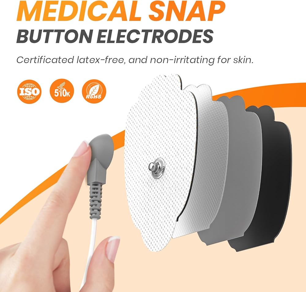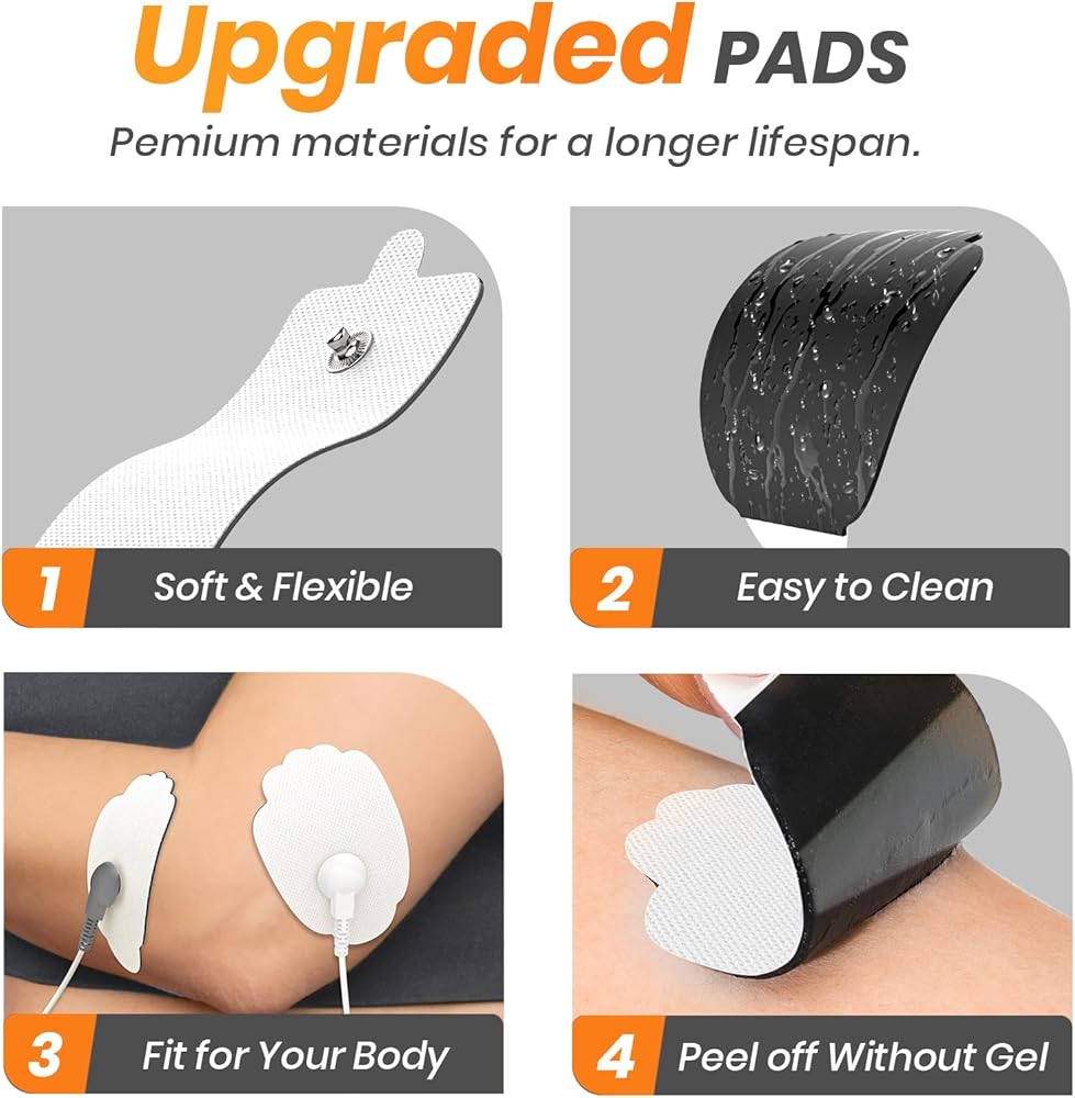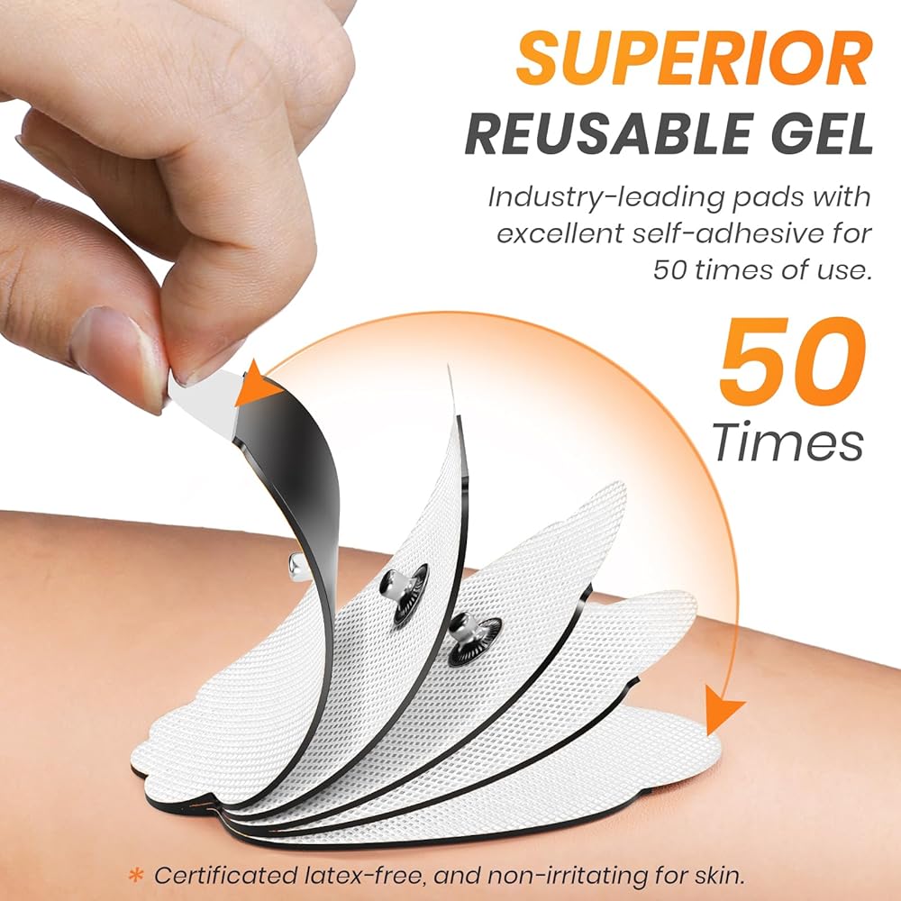 خالية من اللاتكس وآمنة: تتميز وسادات التحفيز الخالية من اللاتكس بأنها مرنة وناعمة وليس من السهل أن تسبب تهيج الجلد. يمكن أن توفر لك وسادات TENS البديلة هذه تجربة آمنة ومريحة لاسترخاء الجسم.