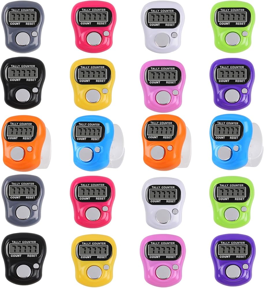 عداد تالي 20 قطعة عداد إصبع إلكتروني عداد رقمي للفرس 5 أرقام عد LCD للحياكة/الجولف/التدريب/عد السلع/اللفة إلخ