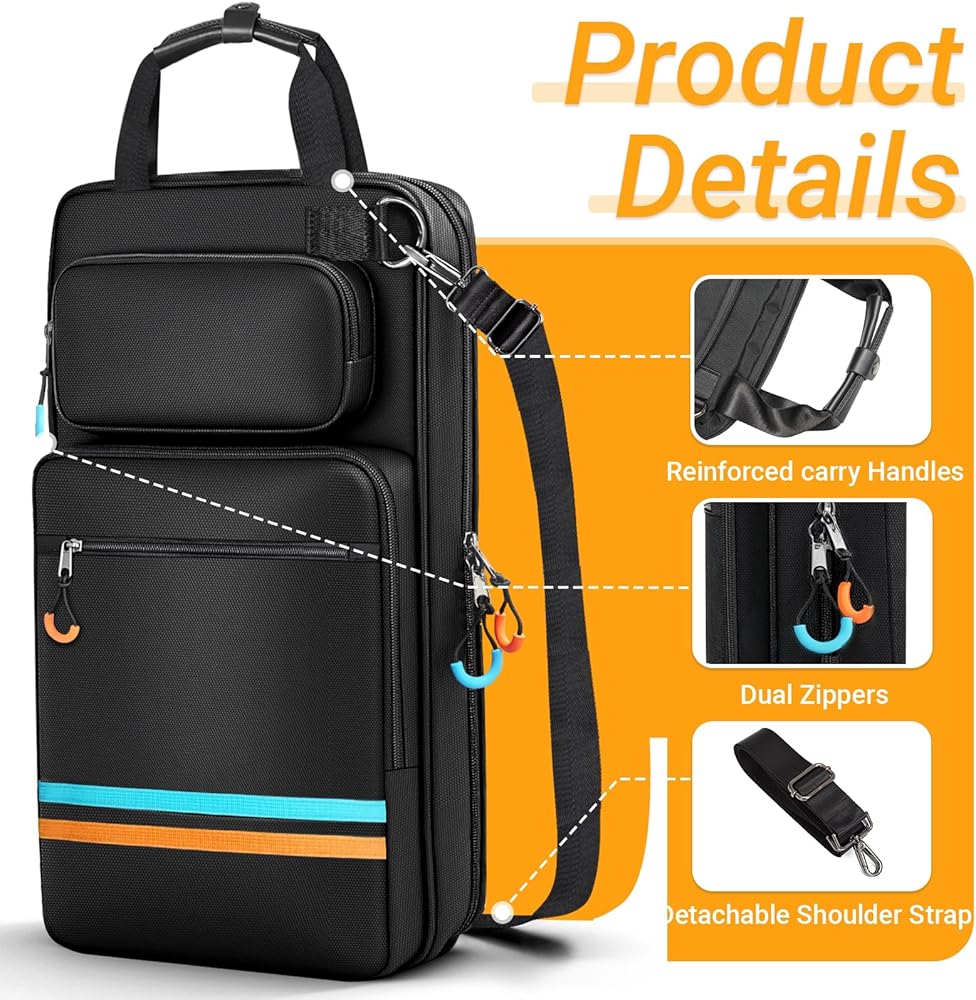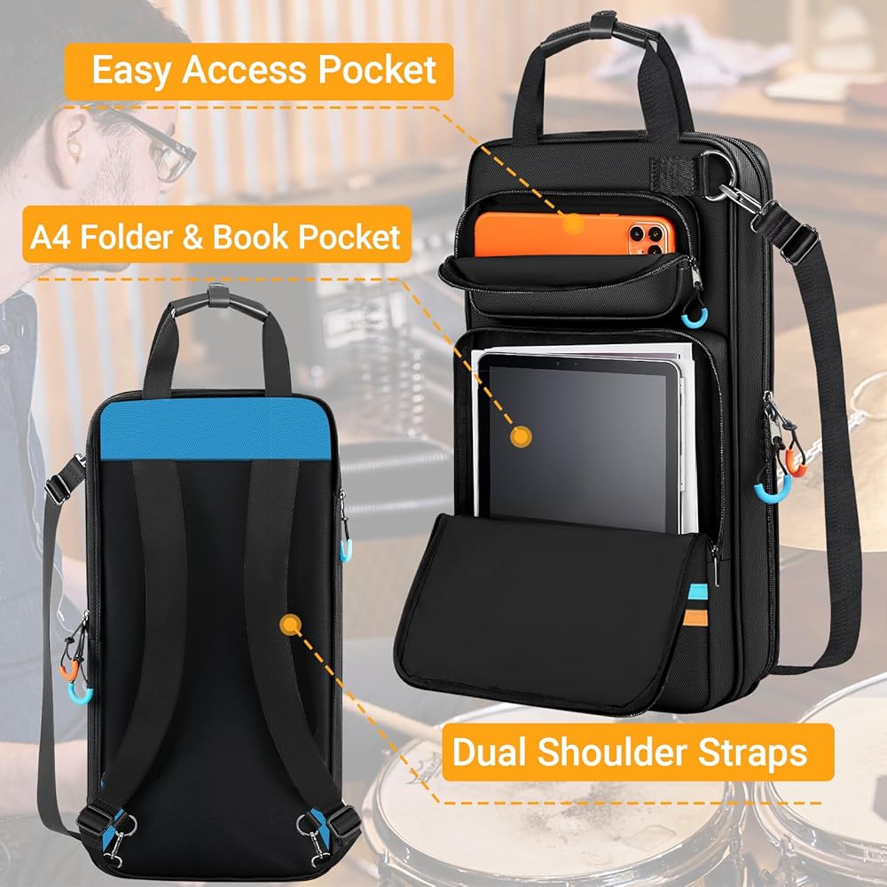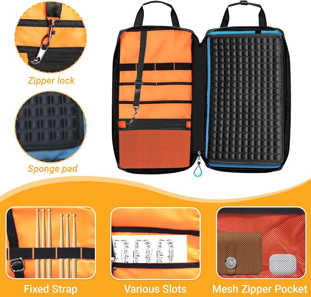 حمل مريح: حقيبة عصا الطبل هذه مصممة بمقابض حمل معززة وحزام كتف قابل للتعديل، يمكنك حمل الحقيبة باليد أو على الكتف أو على الجسم. نافذة خلفية لبطاقة الهوية لك أو لبطاقة عمل الفرقة الخاصة بك.
