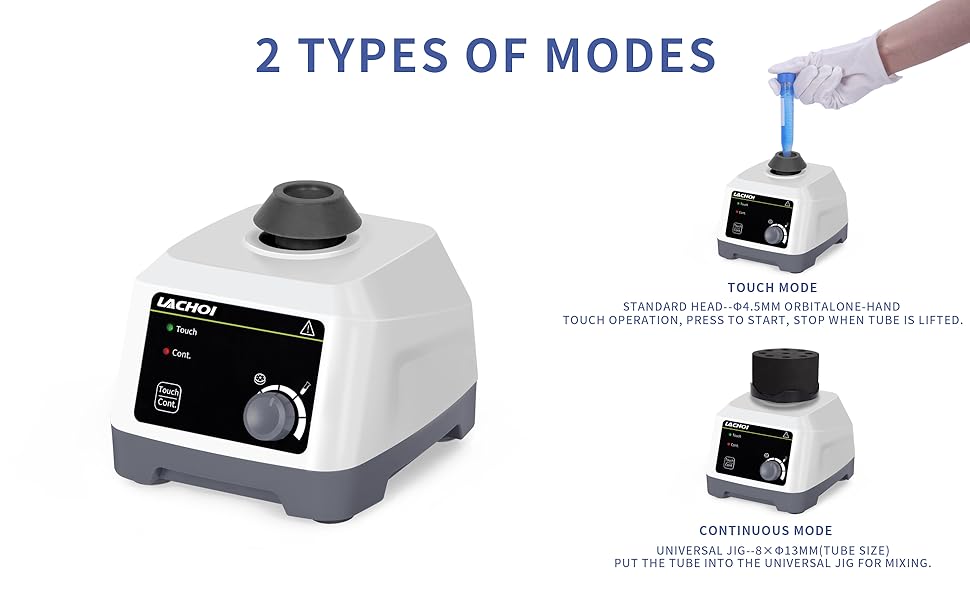 وضعان للتشغيل: الوضع المستمر: قم بتوصيل الطاقة، وتشغيل وضع التشغيل المستمر للخلاط الدوامي، وضبط السرعة، وتشغيل لفترة طويلة حتى يتم إيقاف تشغيل الطاقة. وضع اللمس، ما عليك سوى لمس الجزء العلوي من السيليكون الناعم للضغط لبدء الخلط وإيقافه بمجرد مغادرة الحاوية، وتسمح قوة البدء المنخفضة بعمليات خلط متكررة وخالية من التعب.