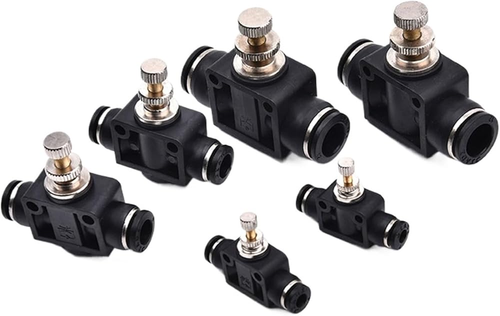 1pcs Black DSA 4 6 8 10 12MM OD Tube Flow control Throttle valve Pneumatic Fittings Pneumatic type speed control connector