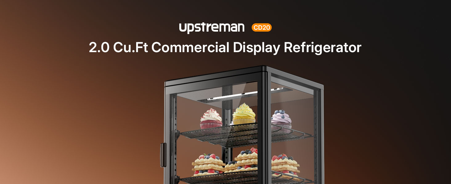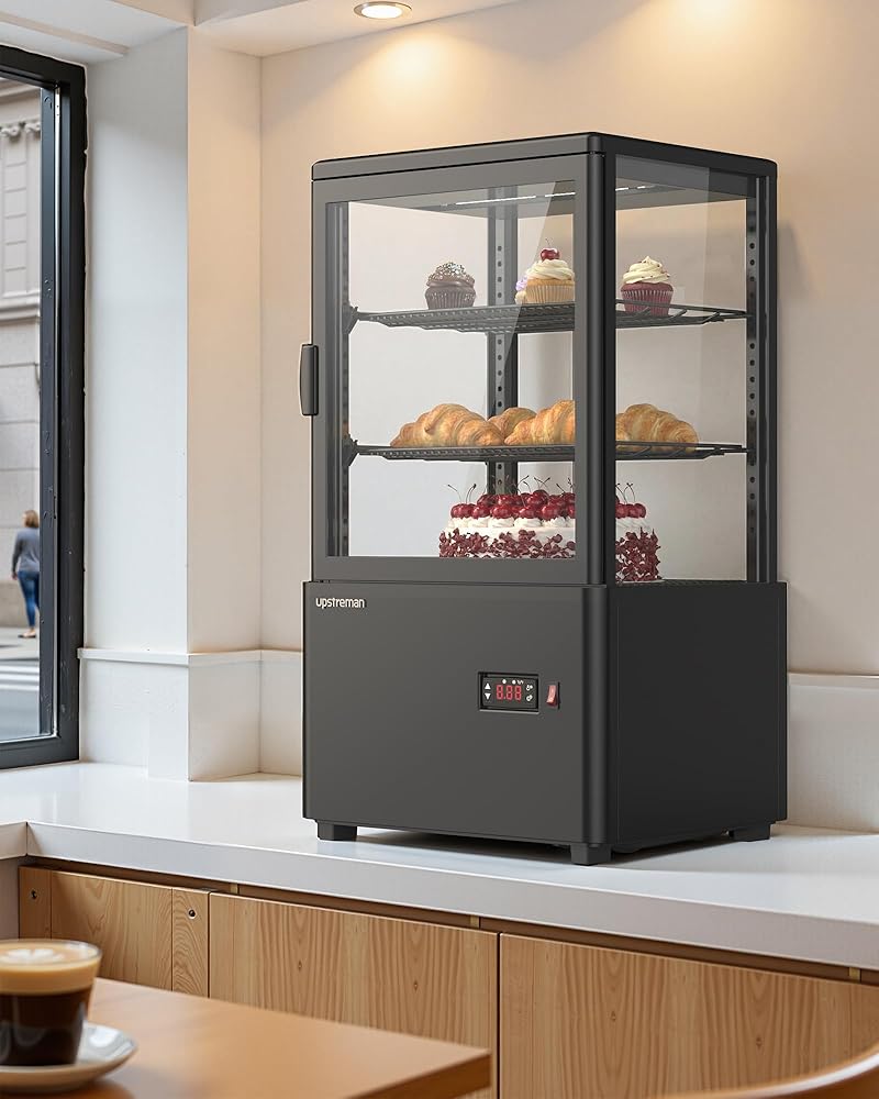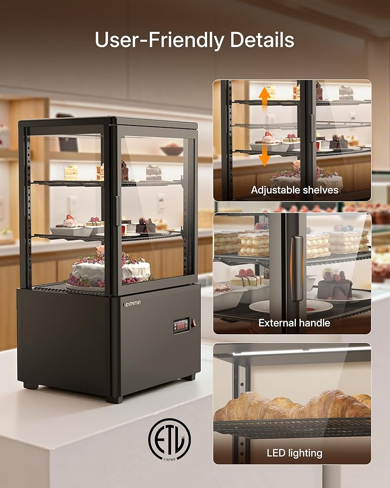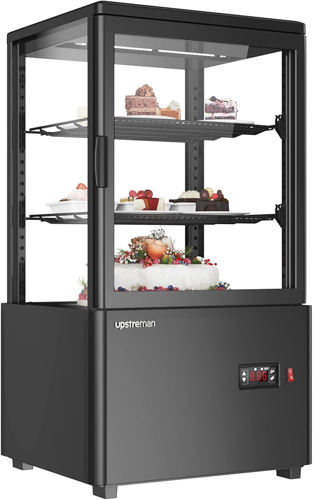 ثلاجة عرض المعجنات Upstreman كونترتوب، 2.0 قدم مكعب / 56 لتر، ثلاجة عرض الكعك التجارية، واجهة عرض المخبوزات مع ضوء LED، ترموستات رقمي، للمقهى، المطعم، المتجر، CD20