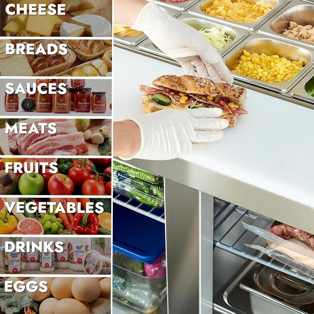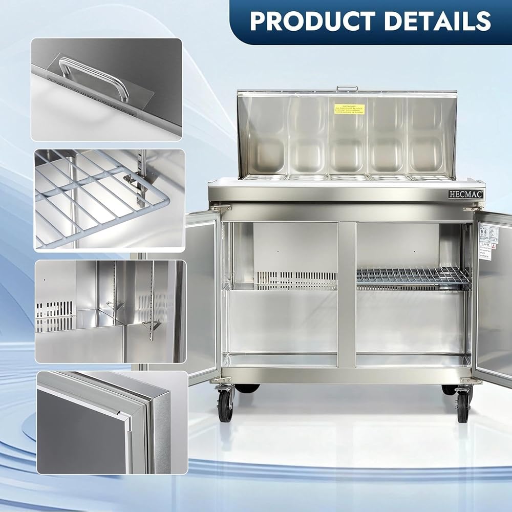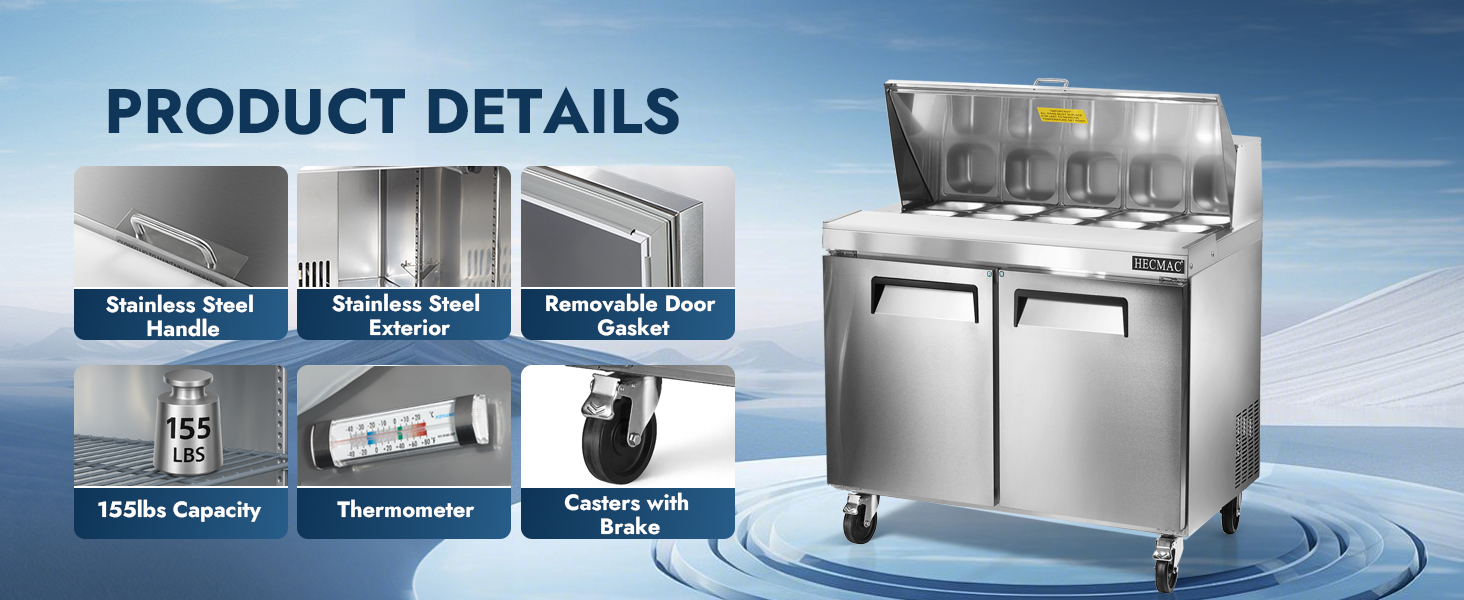 تصميم داخلي واسع وقابل للتخصيص: تم تصميم هذه الثلاجة شديدة التحمل لخدمة الطعام بكميات كبيرة، وتوفر مساحة داخلية كبيرة مع رفوف قابلة للتعديل، تناسب كل شيء بدءًا من المكونات السائبة وحتى الزجاجات الطويلة. مثالية للمطاعم والمطاعم ومحلات البقالة التي تحتاج إلى تخزين متعدد الاستخدامات.