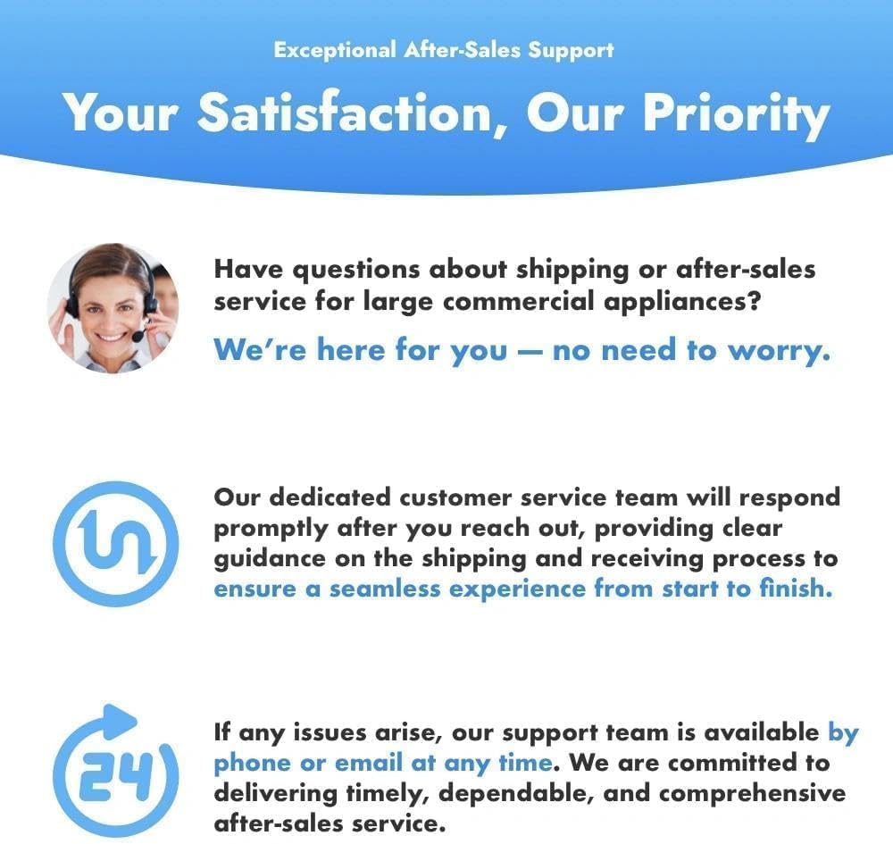 هيكل من الفولاذ المقاوم للصدأ من الدرجة الصناعية - مصمم ليدوم طويلاً: الجزء الخارجي والداخلي من الفولاذ المقاوم للصدأ يقاوم الخدوش والتآكل وبصمات الأصابع، ويصمد أمام بيئات المطبخ الصعبة. سهل التنظيف ومصمم ليدوم طويلاً في عمليات تقديم الطعام ذات الحركة المرورية العالية.