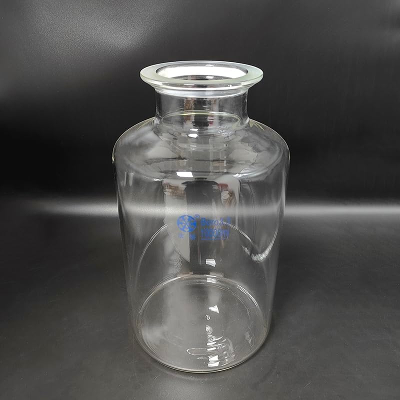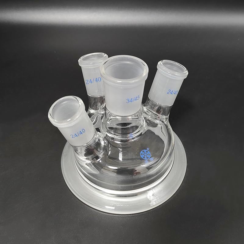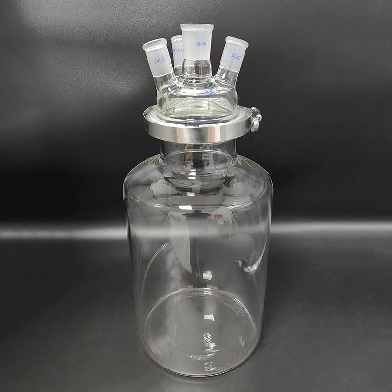 Single Layer Cylindrical Open Reactor Bottle with 10L Bottom, 150mm Flange, Stainless Steel Clip, 4 Sides Oblique Joint, Center 34/45, Side 24/40