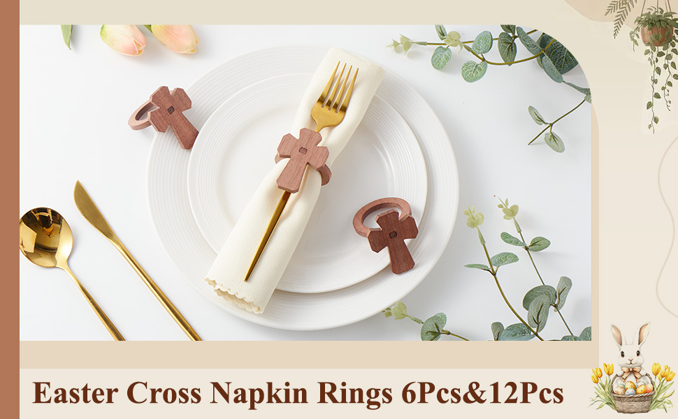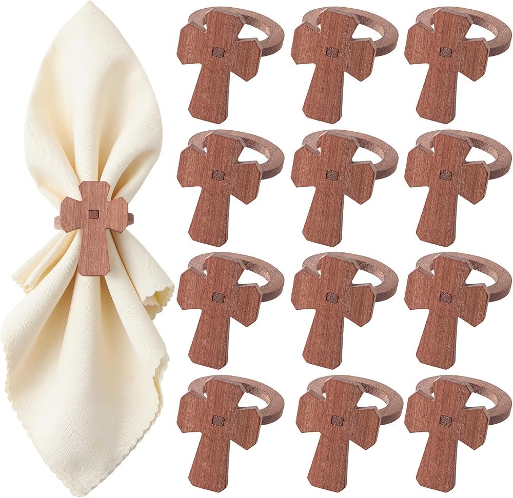 مجموعة حلقات مناديل عيد الفصح المتقاطعة من APTWOW مكونة من 12 - حامل مناديل عيد الفصح المسيحي الخشبي، حلقات منديل الربيع لديكور طاولة حفلات أعياد الميلاد وحفلات الزفاف