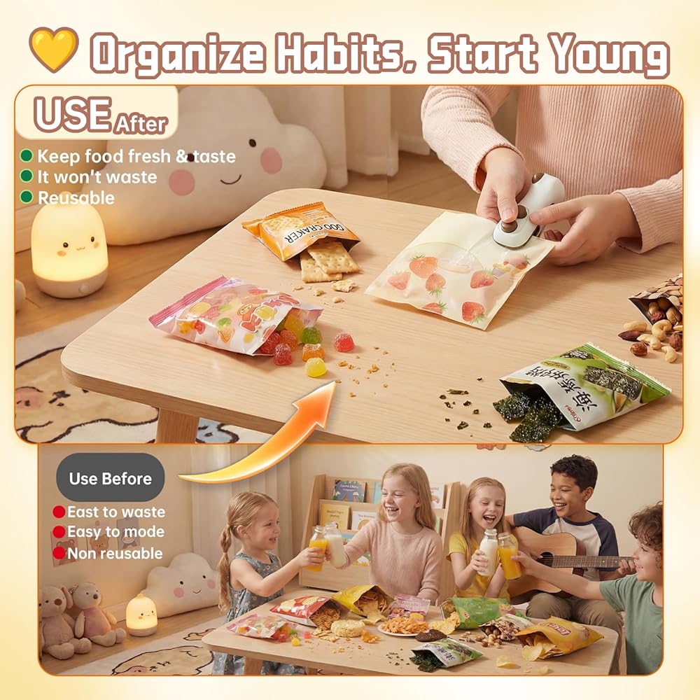 تم تصميم آلة ختم الأكياس الصغيرة المدمجة للغاية والمحمولة للغاية بغطاء خلفي مغناطيسي قوي، والذي يمكن تثبيته بقوة على الثلاجة أو أي سطح معدني للاستخدام الفوري؛ يوفر حجم مانع تسرب الأكياس الصغيرة مساحة على المنضدة ويسهل وضعها في الأدراج أو الحقائب، مما يجعلها مثالية للنزهات أو التخييم أو السفر أو الأنشطة الخارجية، مما يحافظ على الطعام طازجًا أثناء التنقل.