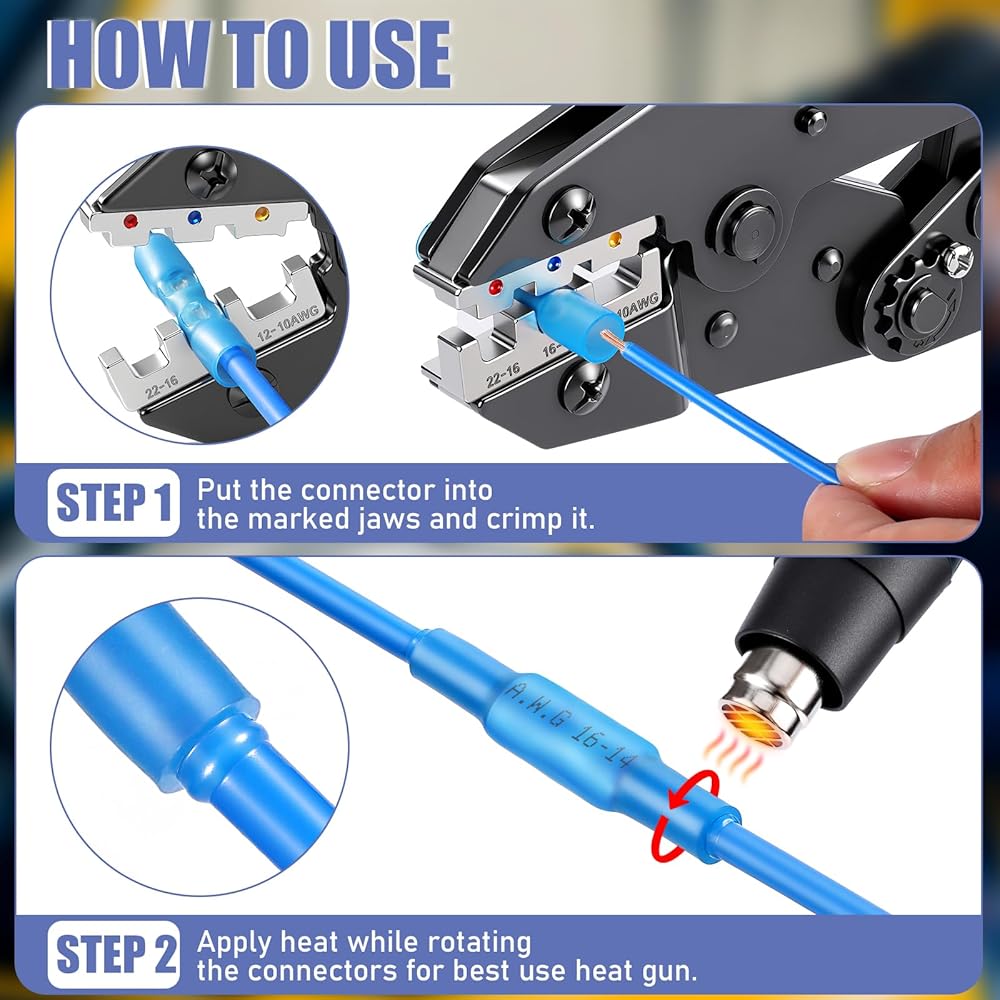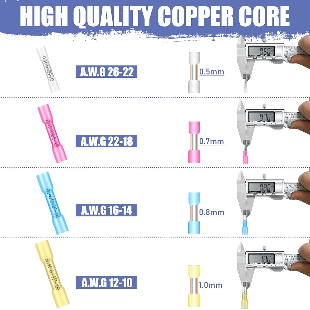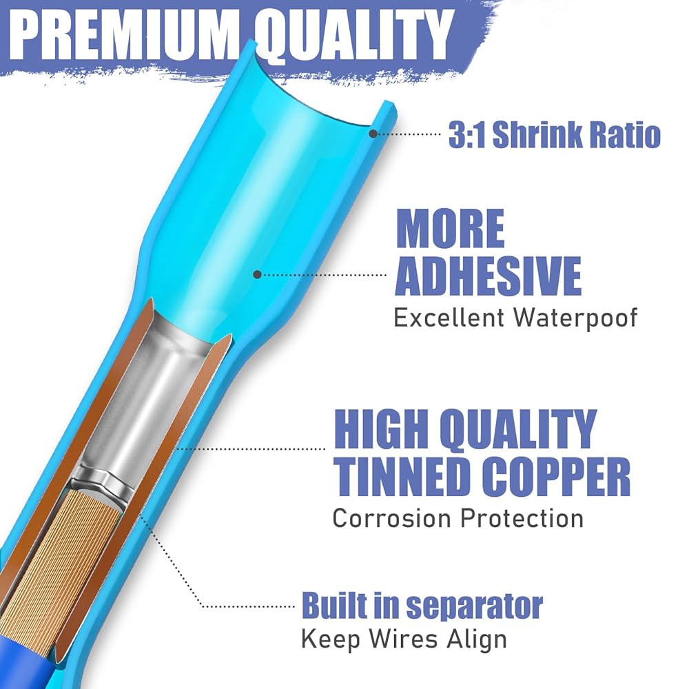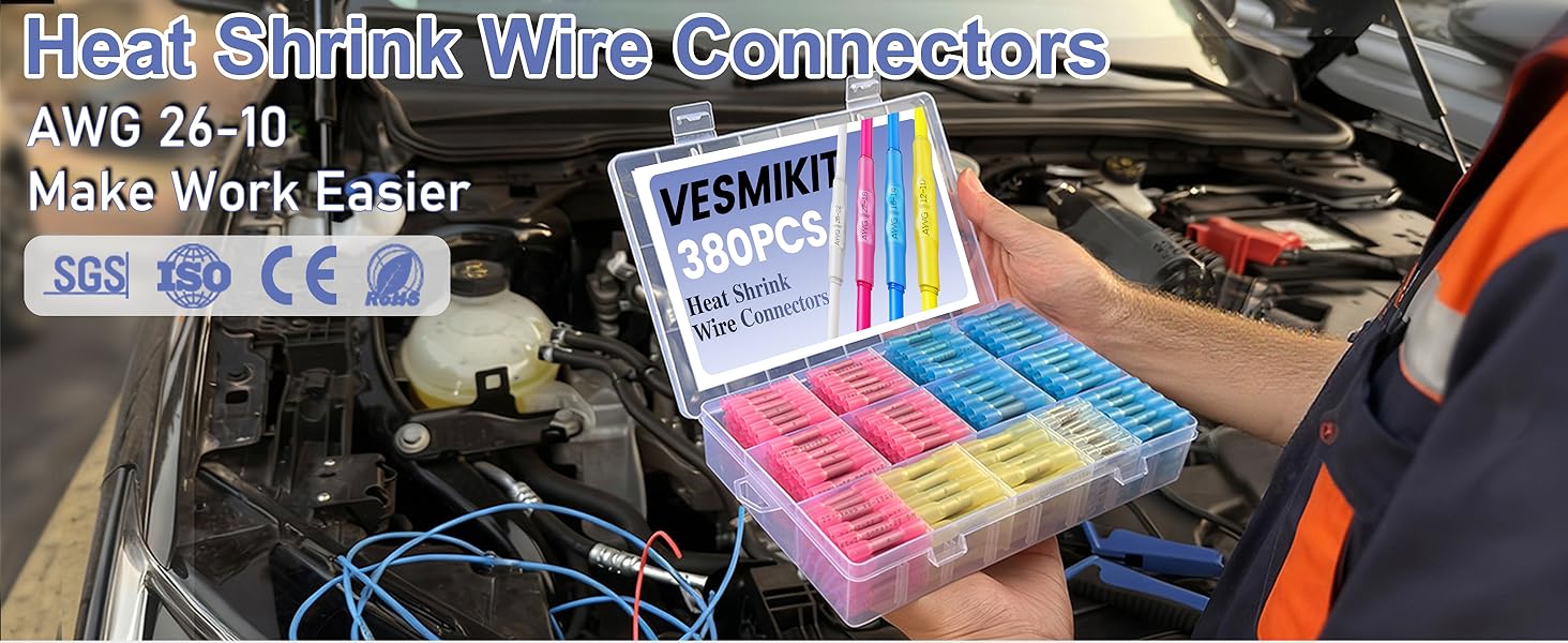 تطبيقات واسعة: سهل الاستخدام. كل ما عليك فعله هو تجعيد الشعر واستخدام الحرارة باستخدام مسدس الهواء الساخن أو الشعلة الصغيرة، وسيشكل ختمًا محكمًا. تتطلب موصلات الأسلاك هذه حرارة أقل للتعافي. موصلات Vesmikit متوافقة مع كافة المعايير الكهربائية، استثمار ممتاز لأي شخص يعمل في مجال التوصيلات الكهربائية. مثالي للاستخدامات البحرية والسيارات، سواء كنت محترفًا أو تعمل بنفسك على القارب أو السيارة أو المقطورة أو مصابيح LED أو RVs أو الدراجة النارية أو المنزل أو المشروع العلمي