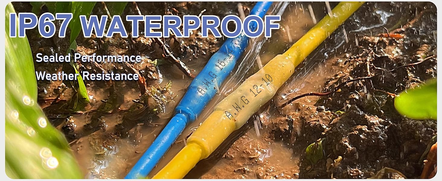 موصلات بعقب من الدرجة البحرية: ما يكفي من اللاصق المبطن داخل موصل سلك الانكماش الحراري 3: 1 سوف ينضح مادة لاصقة تذوب ساخنة عند تسخينها بالتساوي، وتنكمش بسرعة وتلتصق بعزل السلك، لتوفير ختم آمن كامل. إنه مقاوم للماء ومضاد للتآكل ومعزول، ويمكن استخدامه تحت الأرض ويضمن الحماية ضد العناصر