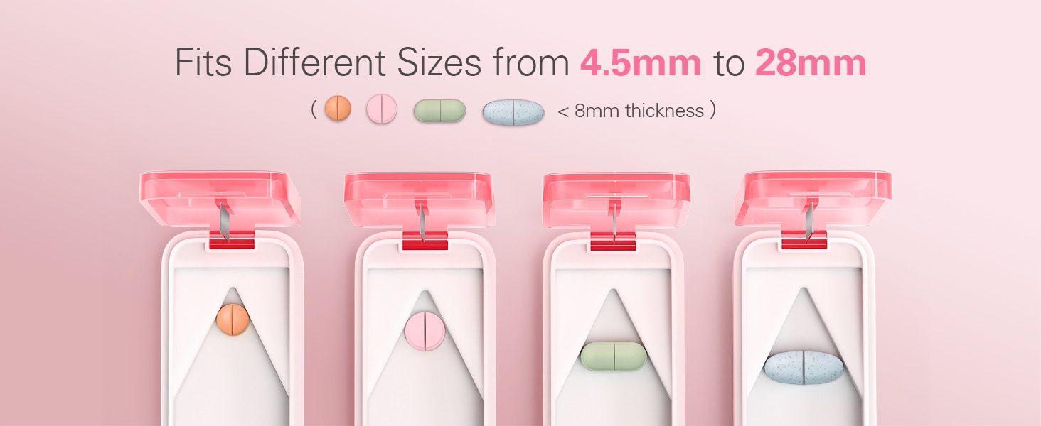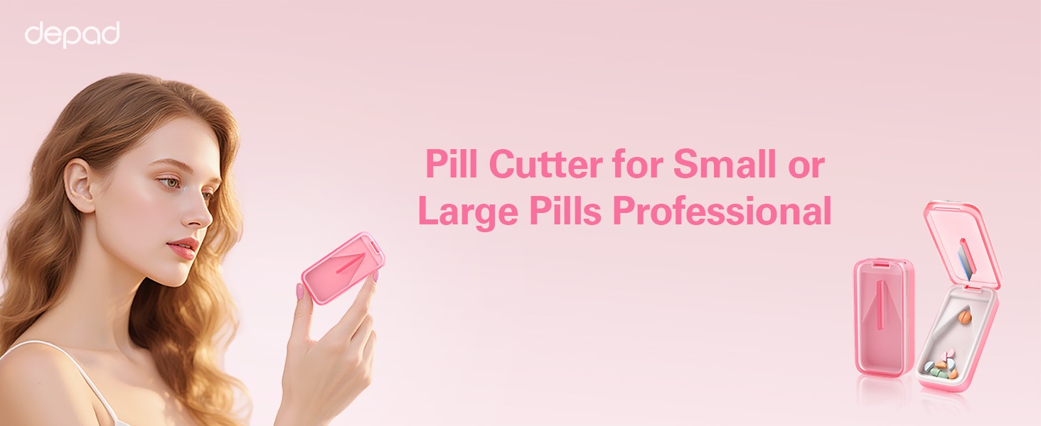 قطاعة حبوب الدواء من ديباد للحبوب الصغيرة والصغيرة، فاصل حبوب الدواء مع وسادة سيليكون قابلة للإزالة، قواطع أقراص للحبوب الصغيرة أو الكبيرة الاحترافية بشفرة حادة (وردي)