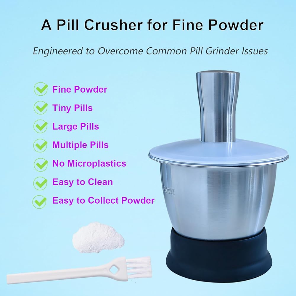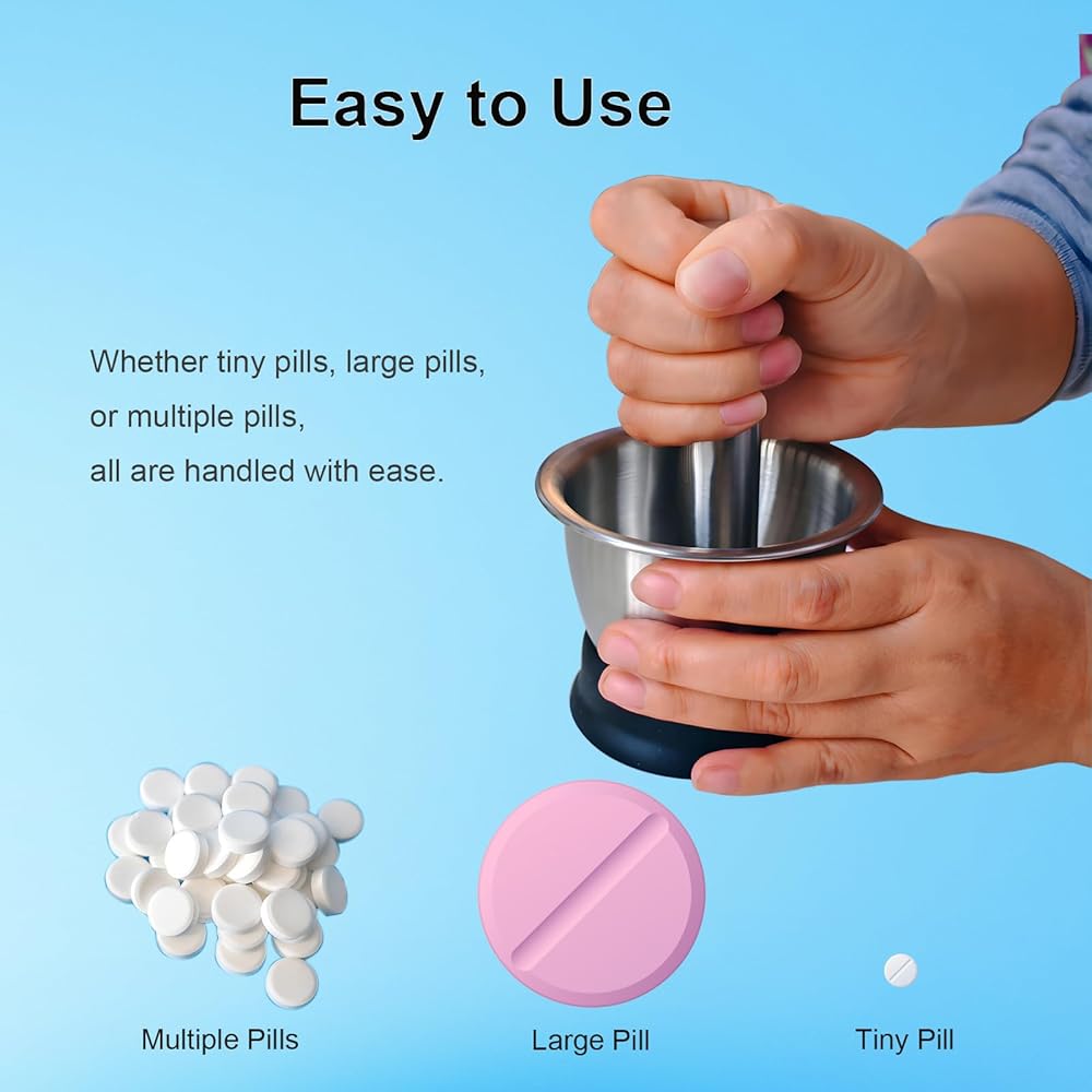 كسارة حبوب الدواء للحصول على مسحوق ناعم: مع تصميم مريح، تسمح لك بطحن الأقراص بسهولة إلى مسحوق ناعم للغاية - حتى لو كنت تعاني من التهاب المفاصل. تم تصميم مجموعة الهاون والمدقة هذه بدقة مع منحنى محسّن، مما يجعل عملية السحق أسهل وأكثر تحكمًا وأكثر كفاءة من كسارات الحبوب الأخرى