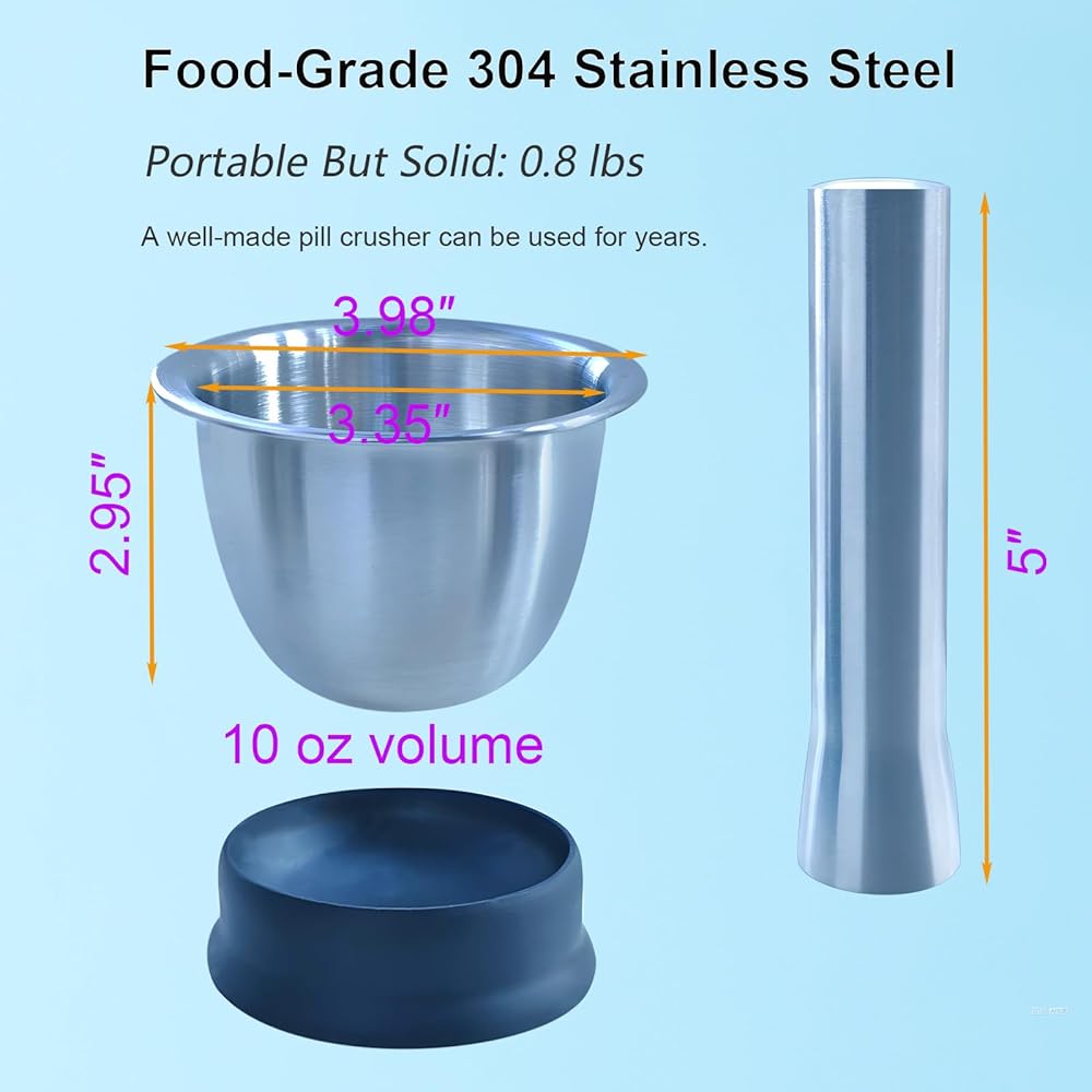 مطحنة حبوب صلبة من الفولاذ المقاوم للصدأ: مطحنة حبوب الدواء عالية الأداء وشديدة التحمل مصنوعة من الفولاذ المقاوم للصدأ بدرجة 304 الآمن غذائيًا، وهي مصممة لتحقيق أقصى قدر من كفاءة الطحن. يمكنها طحن الحبوب وتحويلها إلى مسحوق ناعم للغاية، مثل الدقيق، مما يجعلها سهلة الذوبان في الماء. تتميز مجموعة الملاط والمدقة السميكة المصنوعة من الفولاذ المقاوم للصدأ بالصلابة والمتانة - وليست قشرة فولاذية رقيقة مملوءة بالإسمنت مثل بعض المنتجات المقلدة