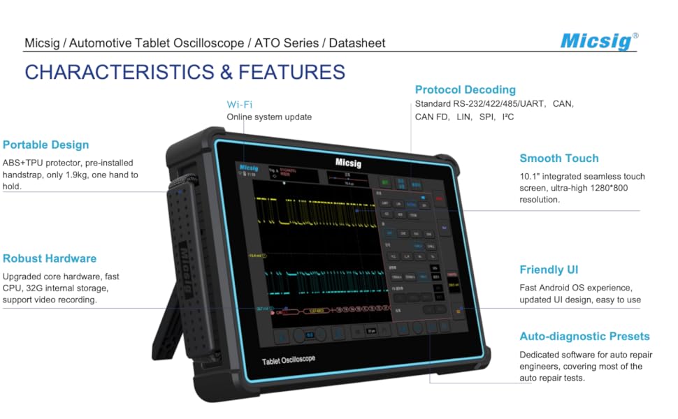• ◆Micisg سلسلة ATO راسم الذبذبات للسيارات مع وظائف الاختبارات المجمعة