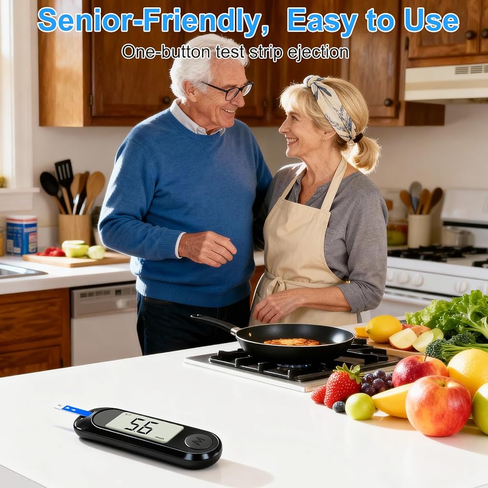 🧓 [إخراج الشريط تلقائيًا لاستخدام نظيف وسهل لكبار السن] إخراج تلقائي بلمسة واحدة لإزالة شرائط اختبار الدم المستخدمة - آمن وصحي للاستخدام العائلي أو كبار السن، لا مزيد من التعامل مع الشرائط الفوضوية. شاشة LCD كبيرة وسهلة القراءة تحتوي على أرقام mg/dL واضحة. نظام تلقائي بدون تعليمات برمجية وتشغيل بيد واحدة - مثالي لكبار السن والأشخاص الذين يعانون من مشكلات في البراعة.
