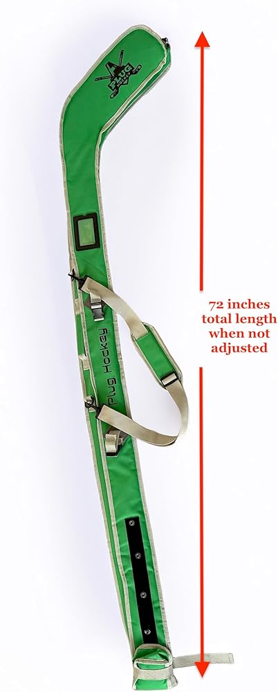 (ADJUSTMENT) On the rear of the hockey stick bag, has velcro with adjustable buttons sizing for proper hockey stick length. Includes adjustable strap to buckle around to keep the sticks for slapping together. Eliminating noise in the car.