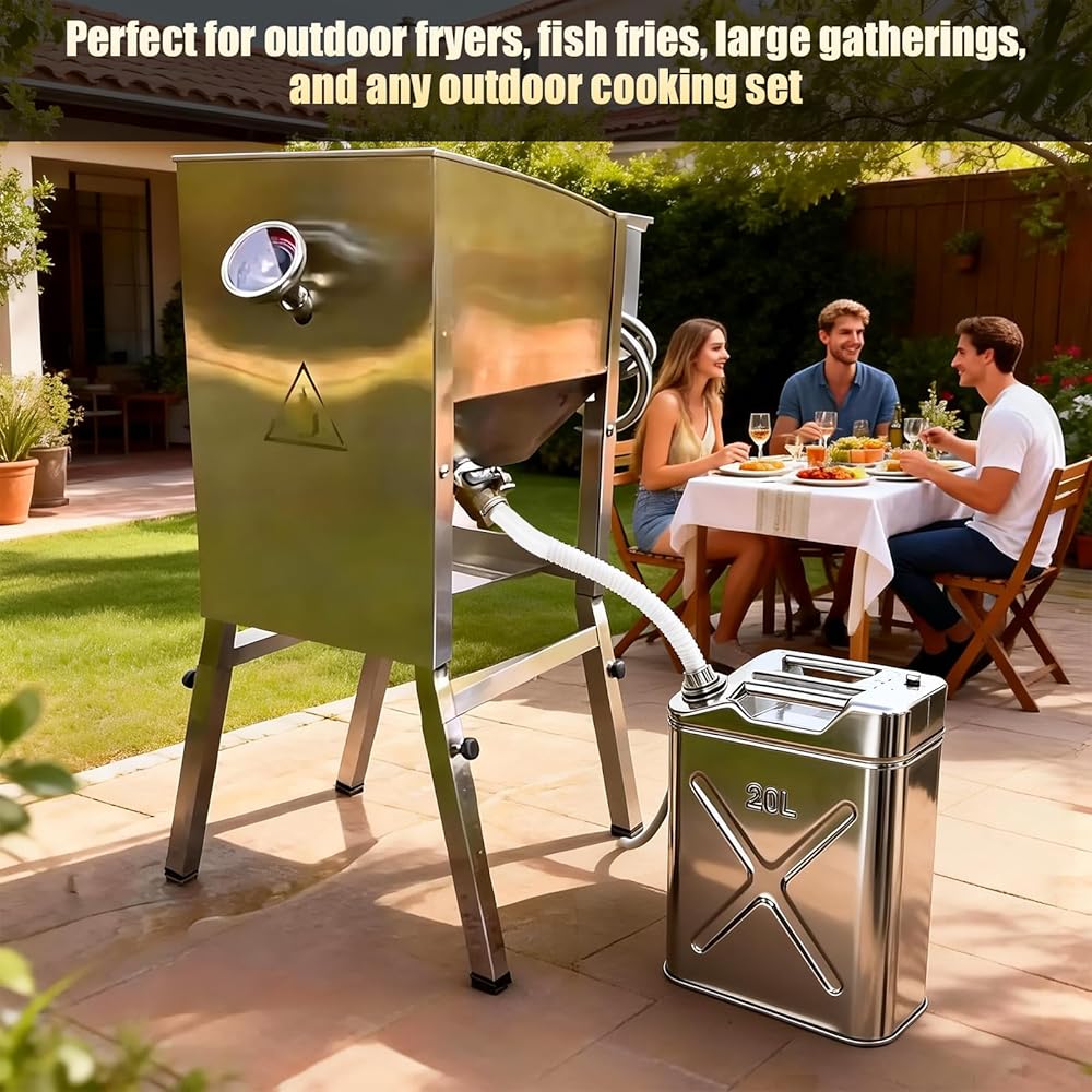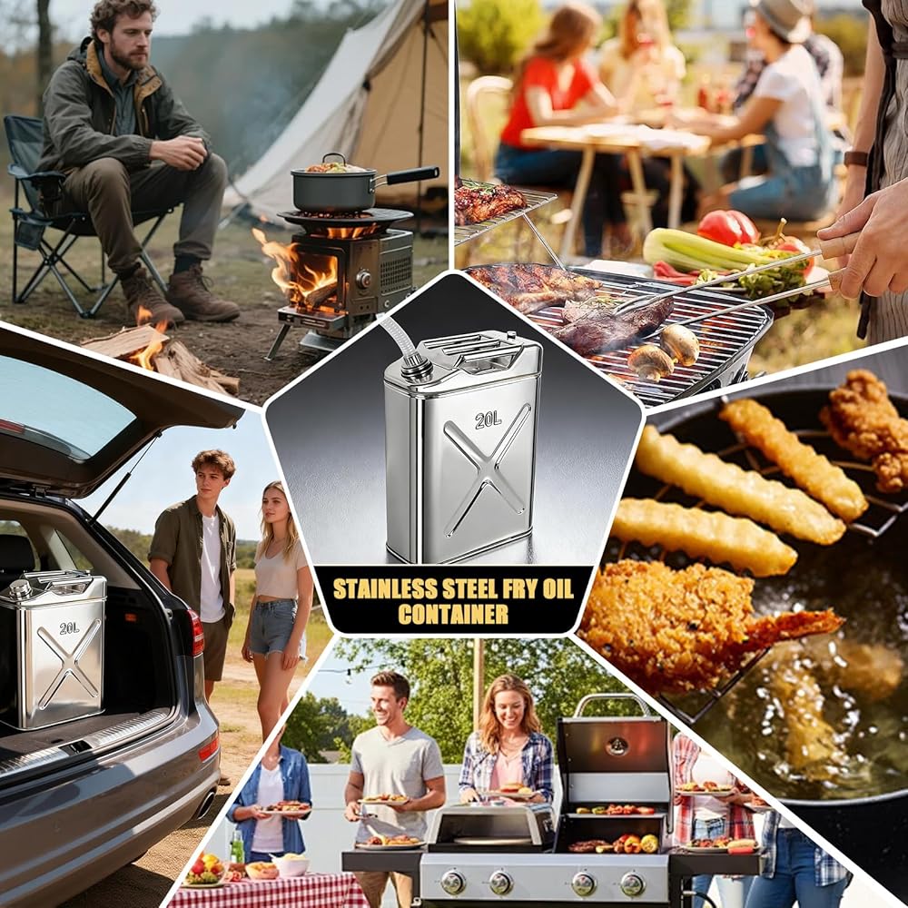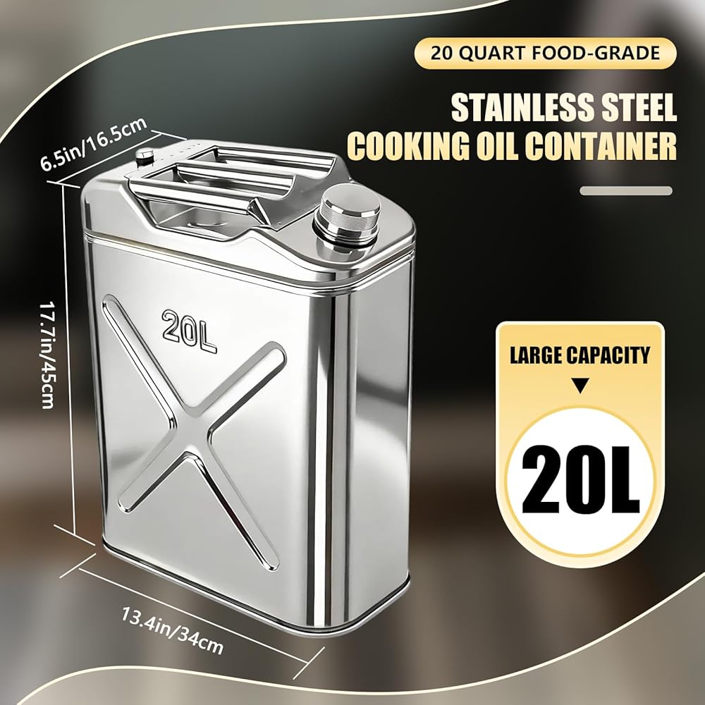 حاوية تخزين زيت قلي كبيرة: يمكن تخزين زيت الطبخ المقاوم للصدأ هذا إضافة متعددة الاستخدامات لكل من المطابخ التجارية والمنزلية، بسعة 5 جالون (20 لتر)، حجم مثالي لتخزين زيت الطبخ